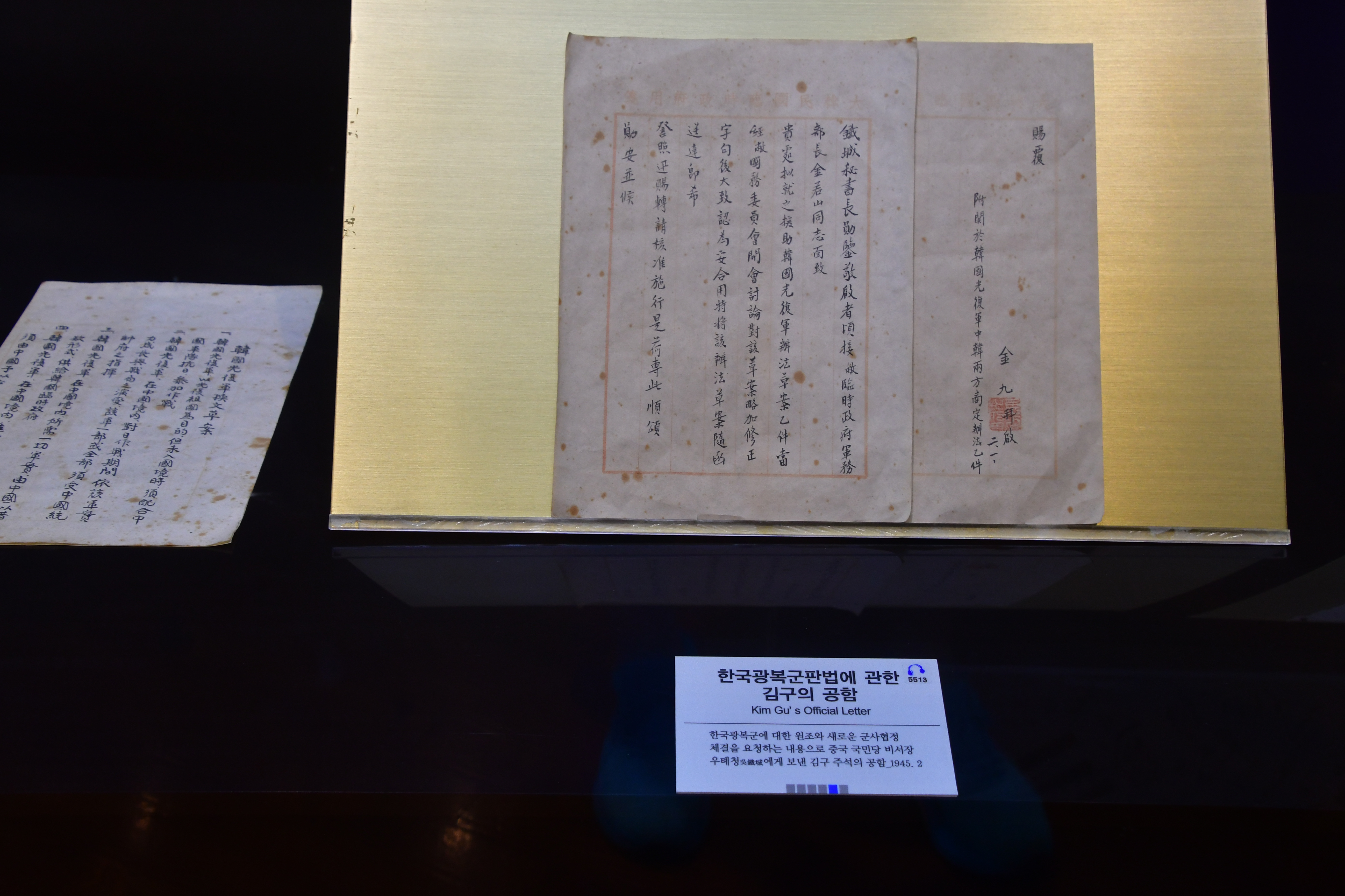 - 한국광복군에 대한 원조와 새로운 군사협정 체결을 요청하는 내용으로 중국 국민당 비서장 우톄청吳鐵城에게 보낸 김구 주석의 공함. <1945.2.>