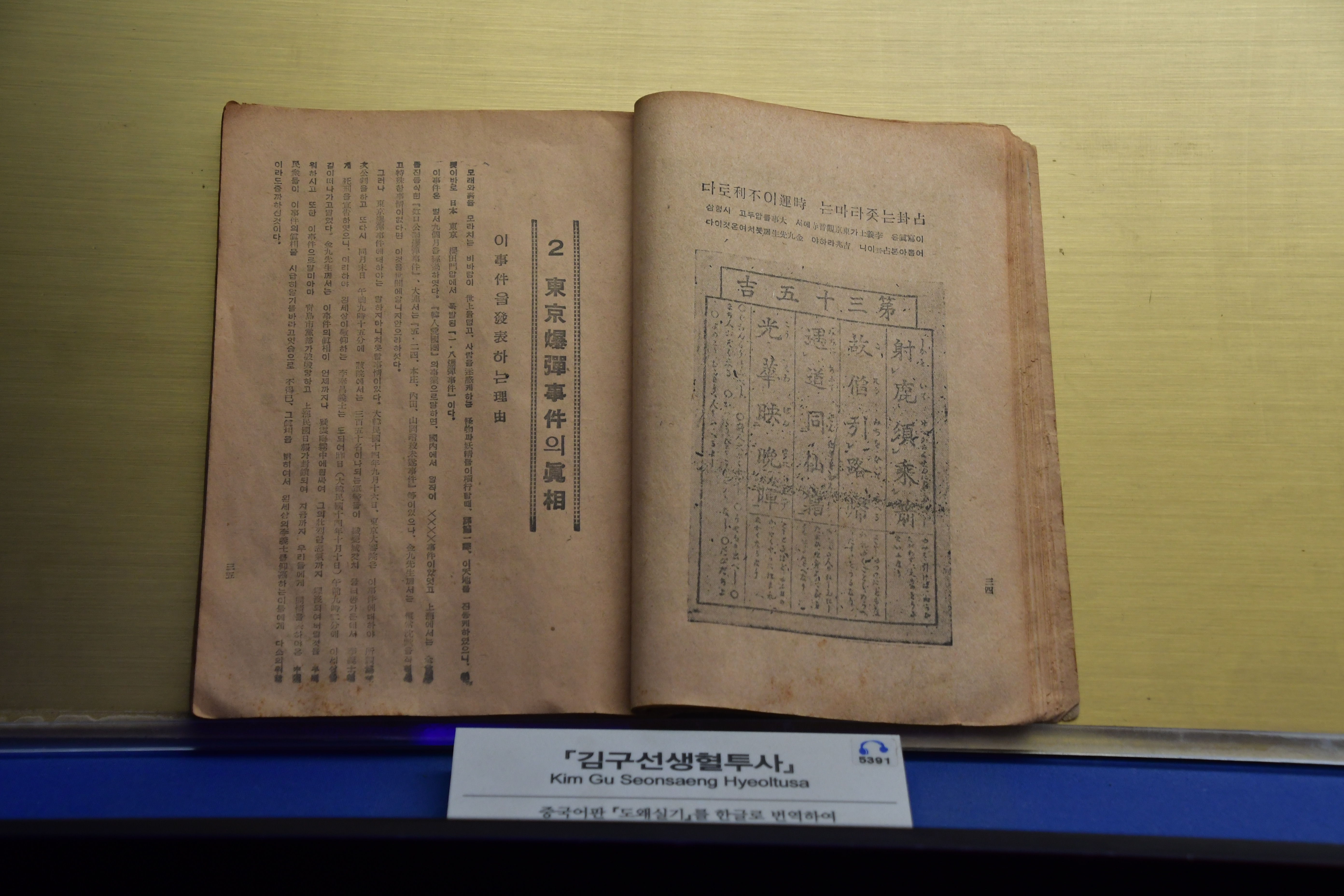 - 중국어판 <도왜실기>를 한글로 번역하여 1947년 제3판을 발간하면서 제목을 <김구선생혈투사>로 바꾸었다. <1947.>
