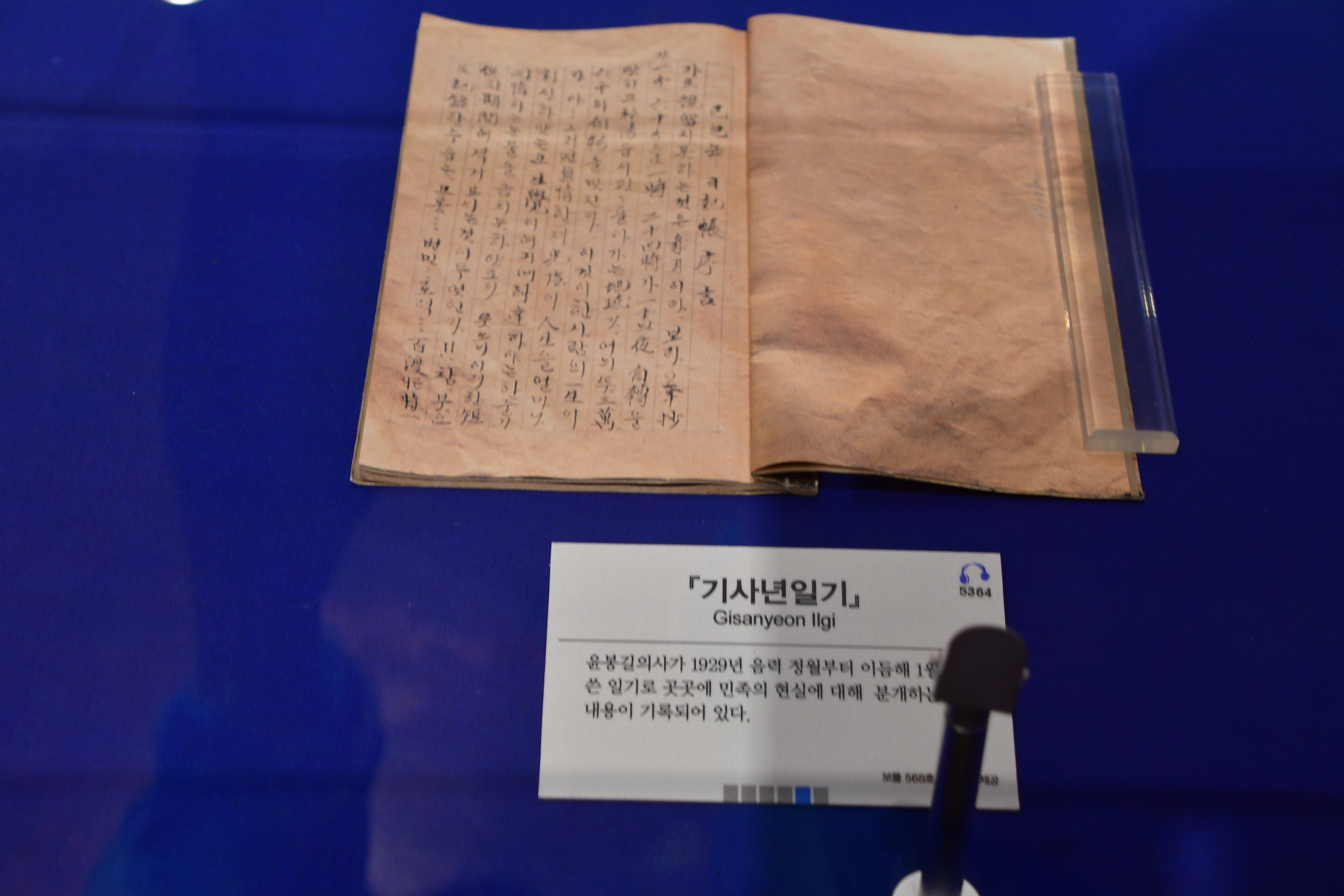 - 윤봉길의사가 1929년 음력 정월부터 이듬해 1월에 쓴 일기이다. 곳곳에 민족의 현실에 대해 분개하는 내용이 기록되어 있다. <보물 568호. 충의사 제공.>