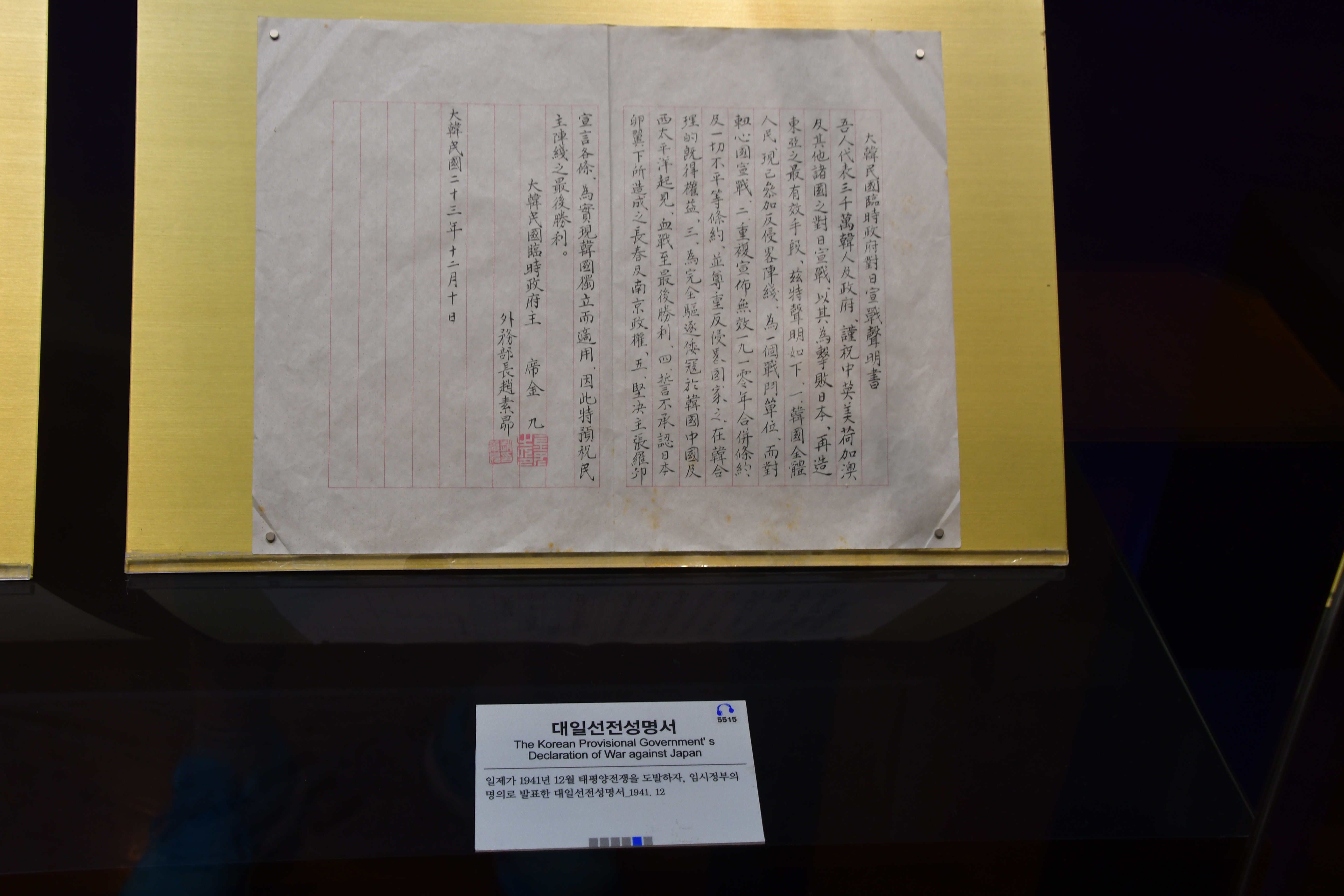 - 일제가 1941년 12월 태평양전쟁을 도발하자, 임시정부의 명의로 발표한 대일선전성명서. <1941.12.>