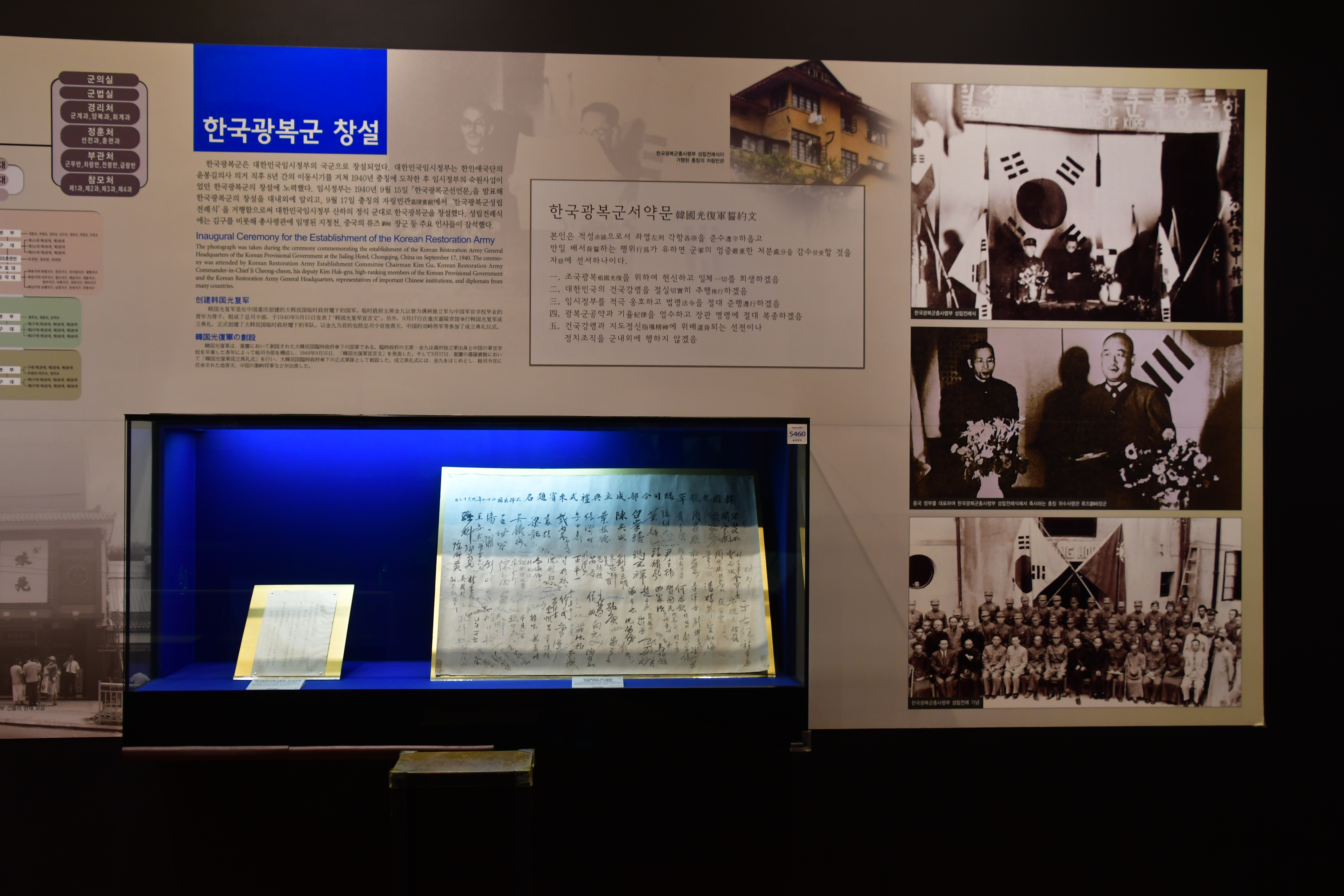 - 1919년 4월 정부 직후부터 산하에 국군을 조직한다는 계획을 가지고 있던 대한민국임시정부는 1930년대부터 그 계획을 실행에 옮겼다. 그리고 마침내 미주동포들의 성금으로 재정을 마련하고 중국 군관학교 출신 한국청년들과 만주독립군 출신들로 구성된 인적자원을 마련해 1940년 9월 17일 중국 충칭重慶에서 한국광복군을 창설했다.