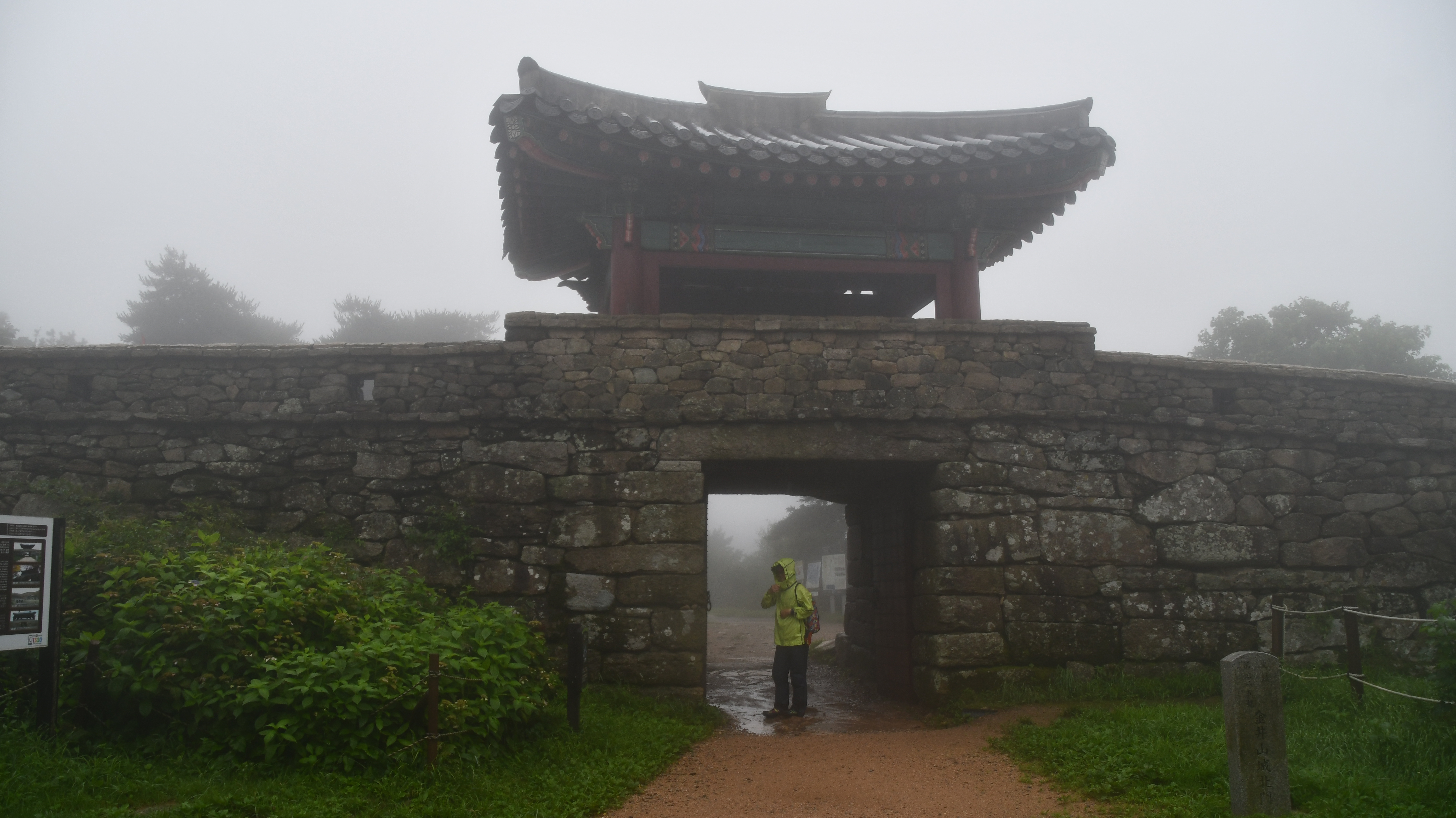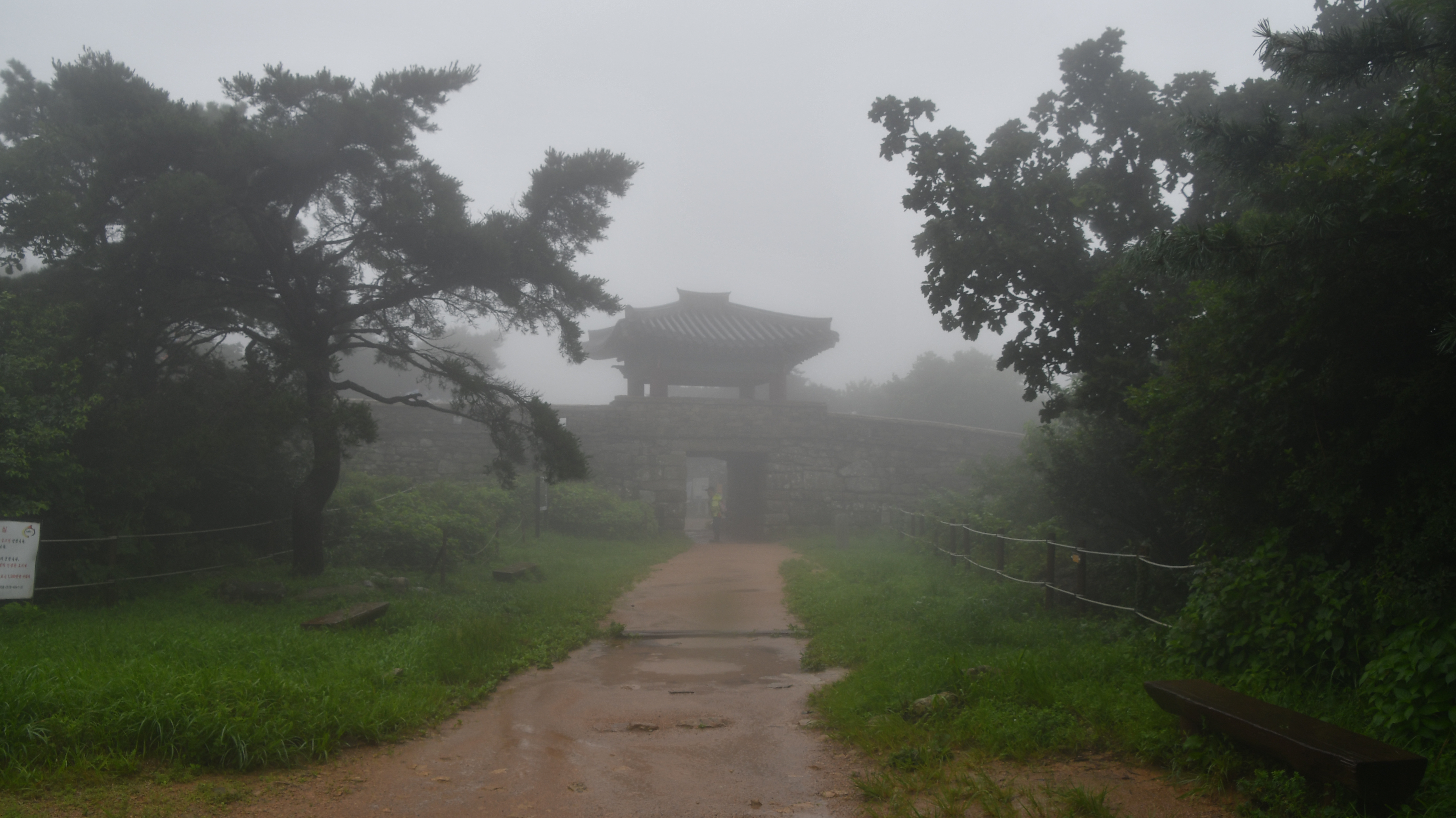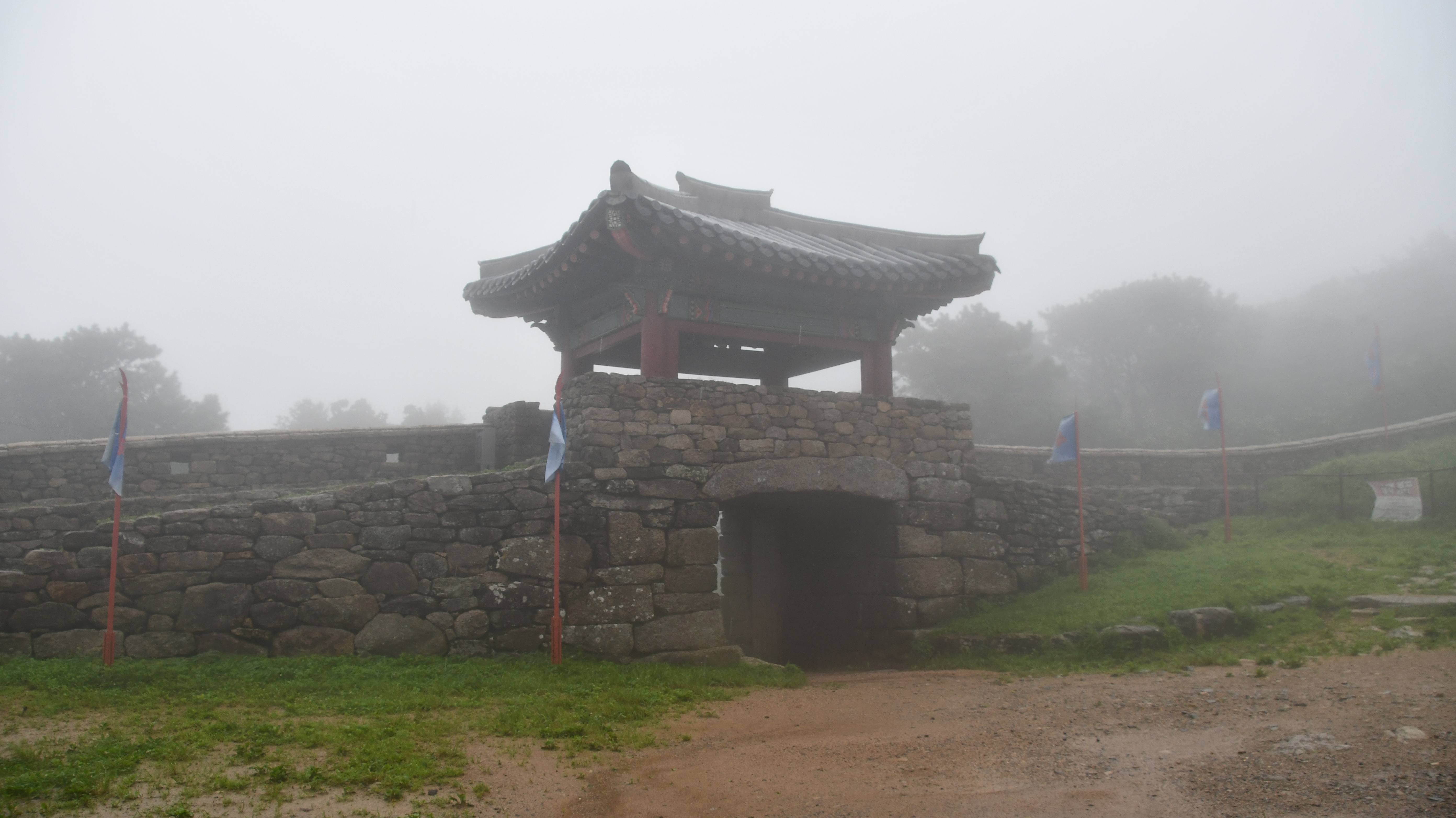 # 멀리 안개 속으로 북문이 보인다.