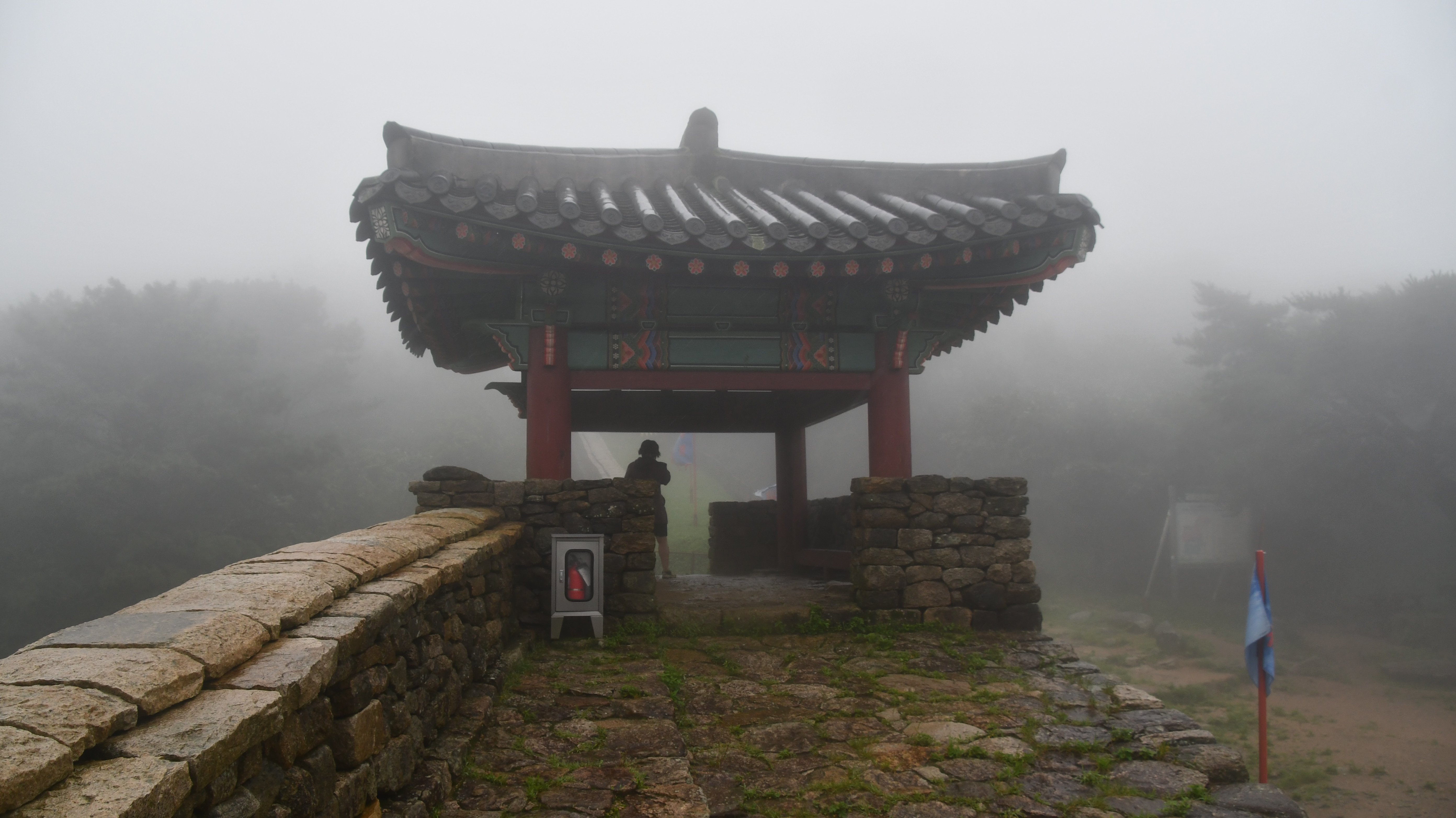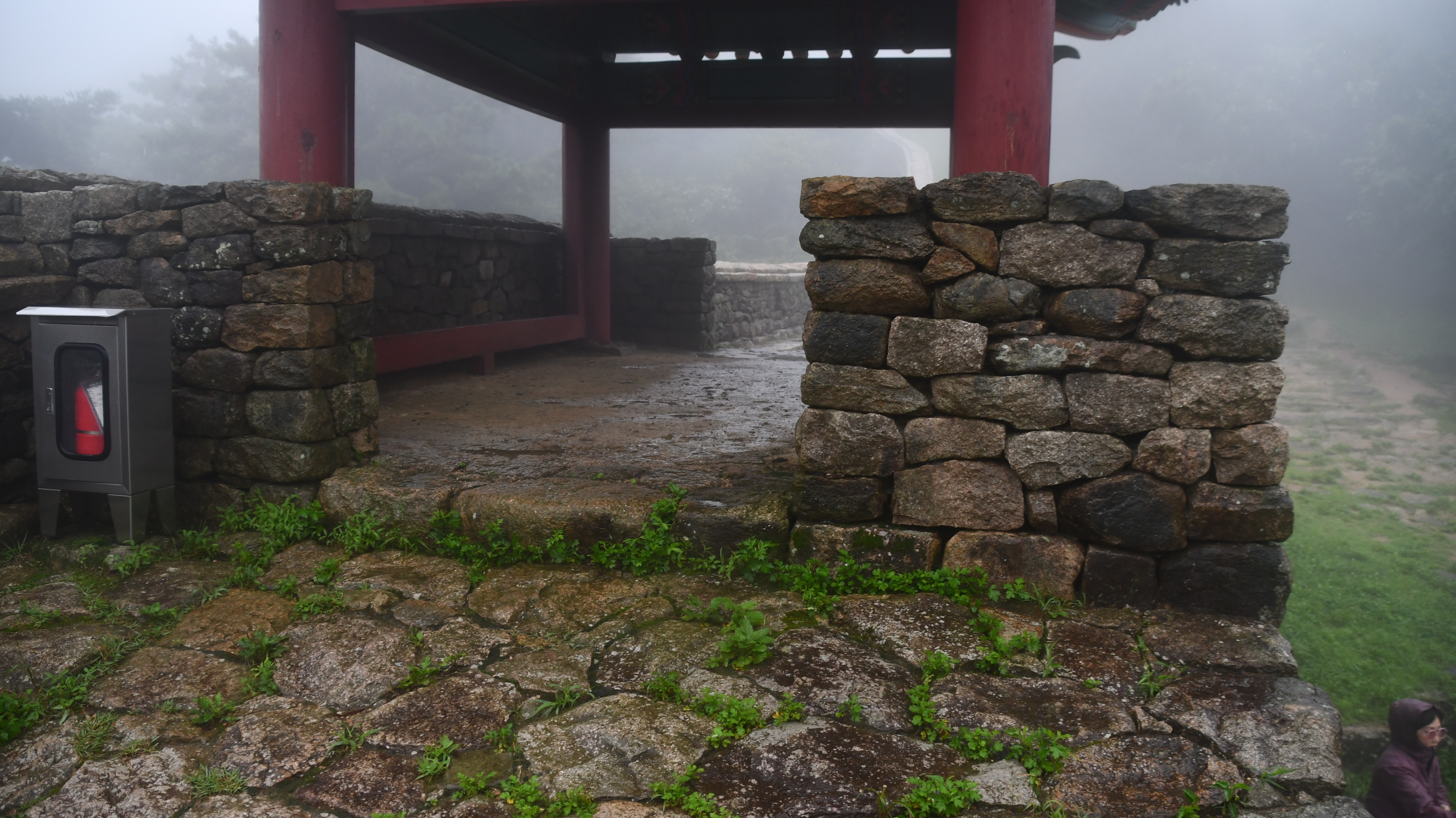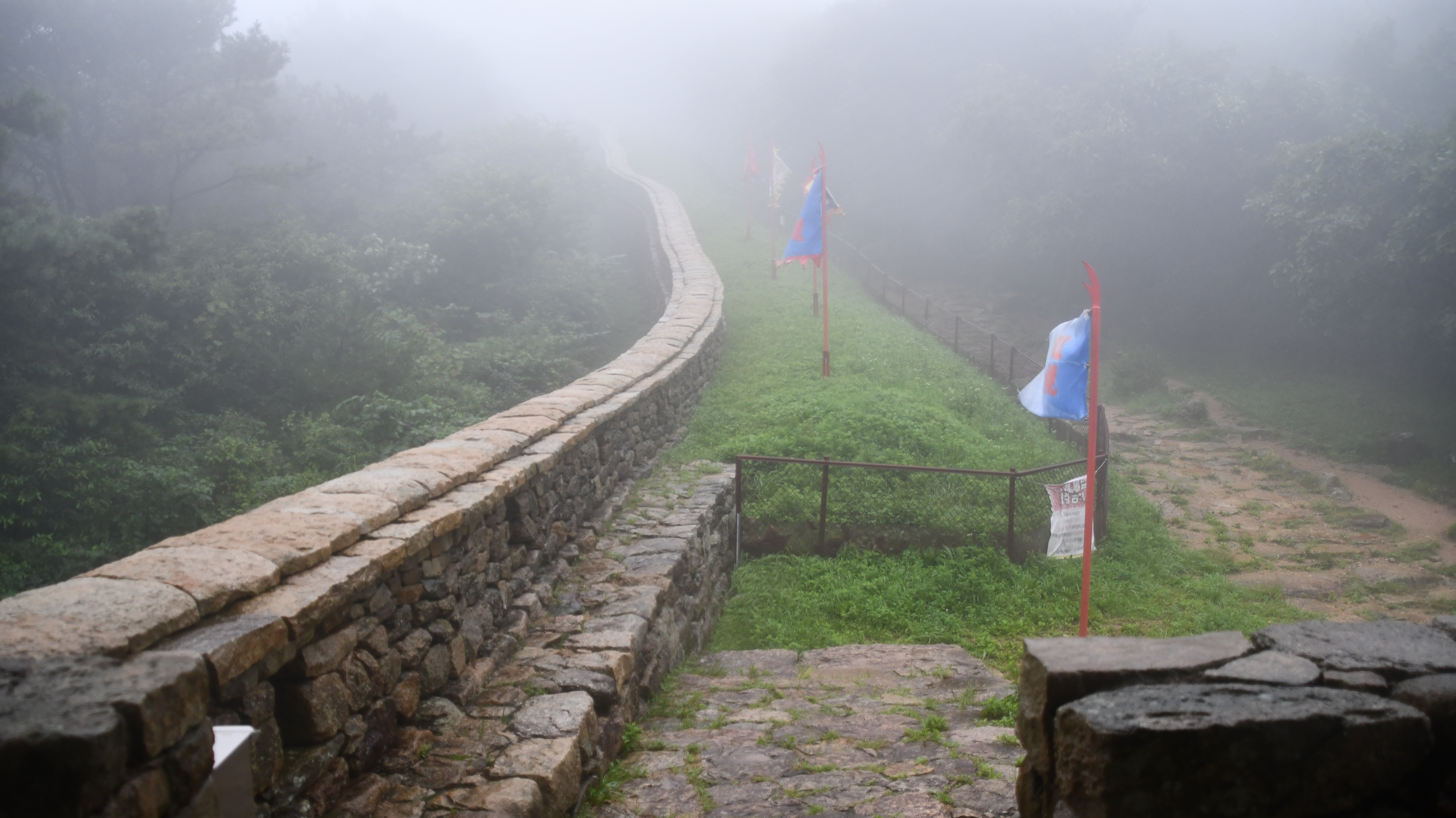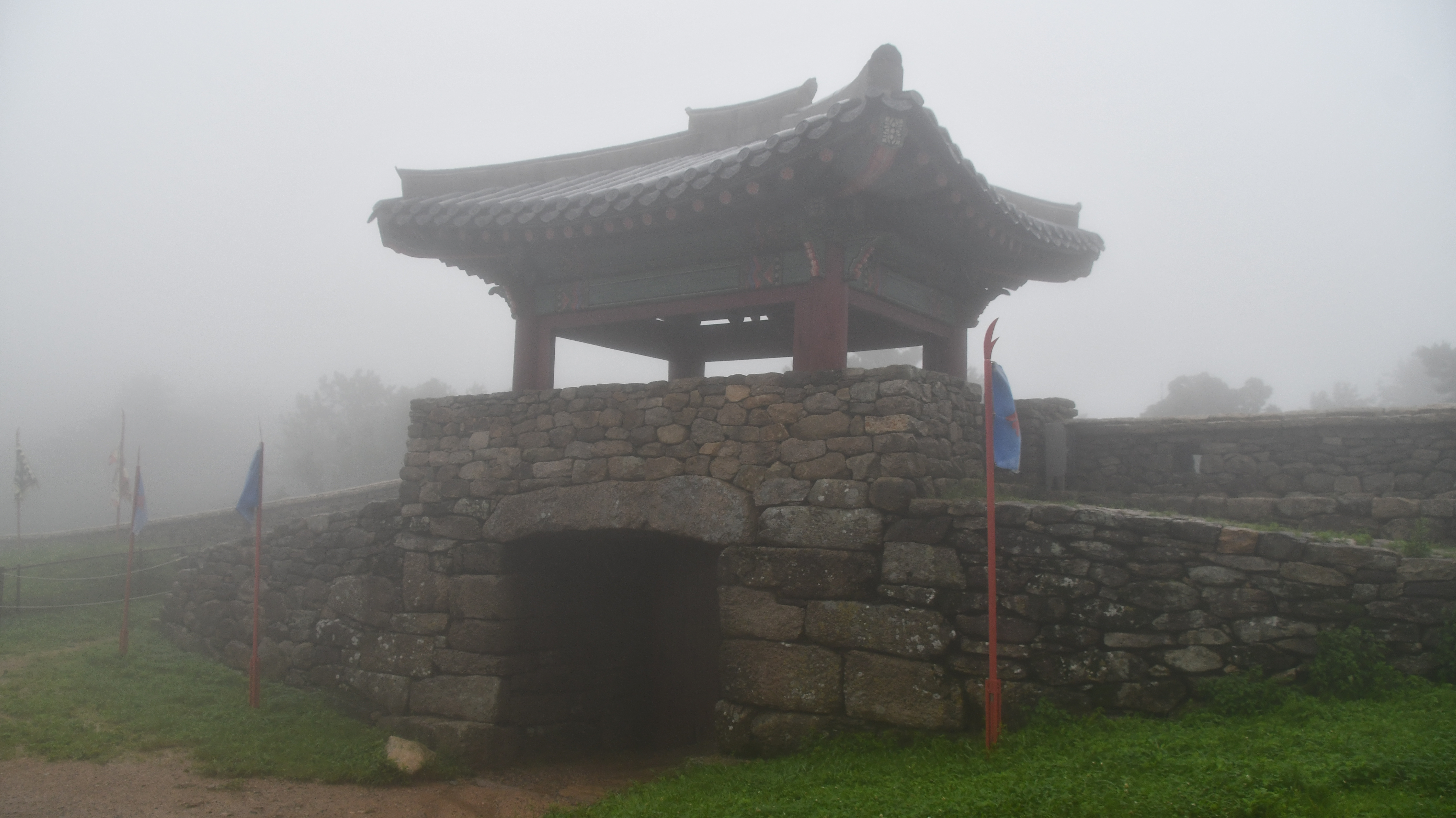 # 멀리 안개 속으로 북문이 보인다.