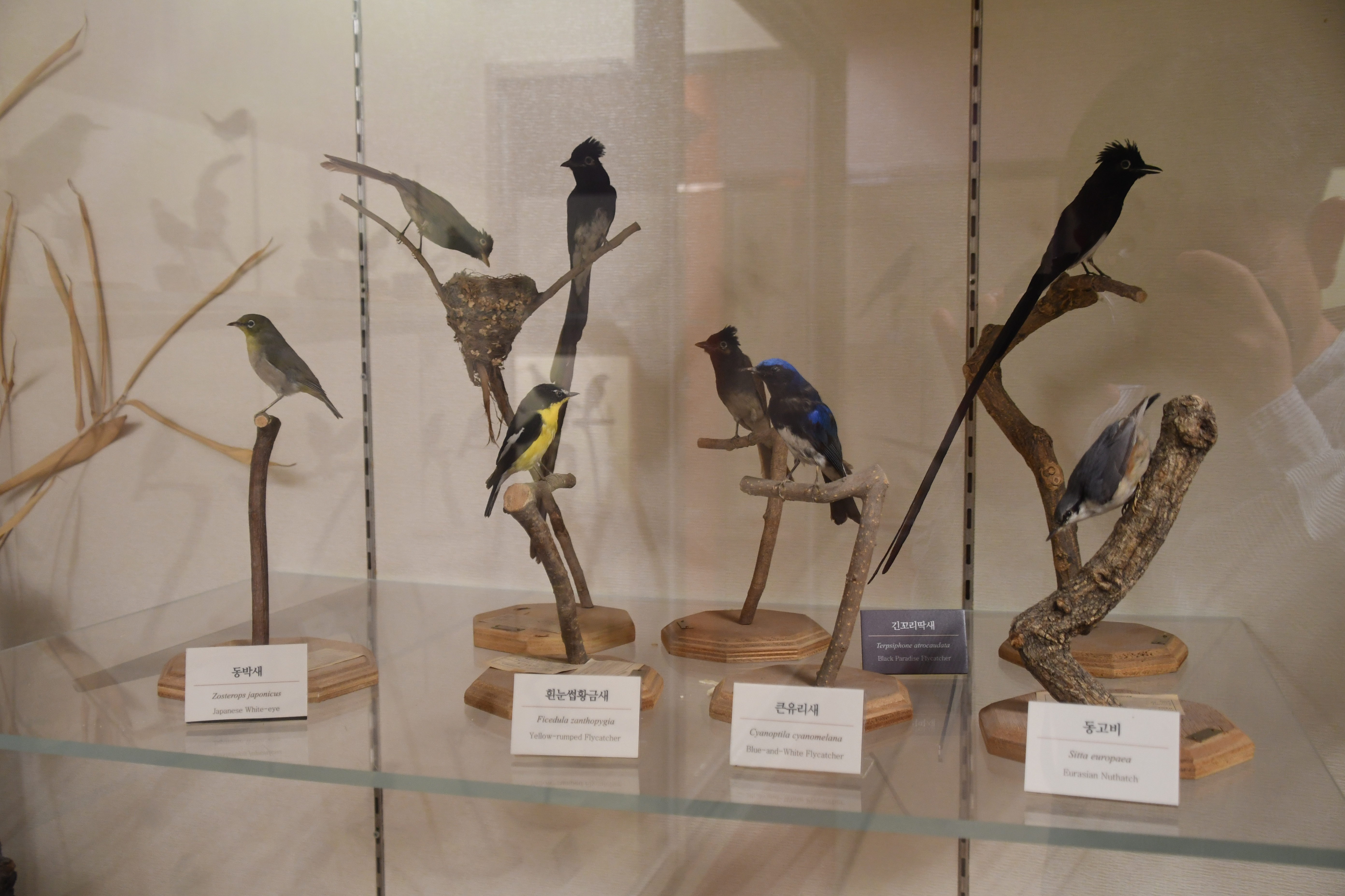 D4에는 까마귀, 물까치, 개개비, 쑥새, 검은머리촉새, 검은멧새, 긴꼬리딱새, 꼬까참새, 동고비, 동박새, 밀화부리, 솔새, 숲새, 알락꼬리쥐발귀, 찌르레기, 콩새, 큰유리새, 푸른얼굴가니새, 홍여새, 황여새, 휘파람새, 흰눈썹황금 등 22종 35류의 박제가 전시되어 있다. 상세목록은 다음과 같다.