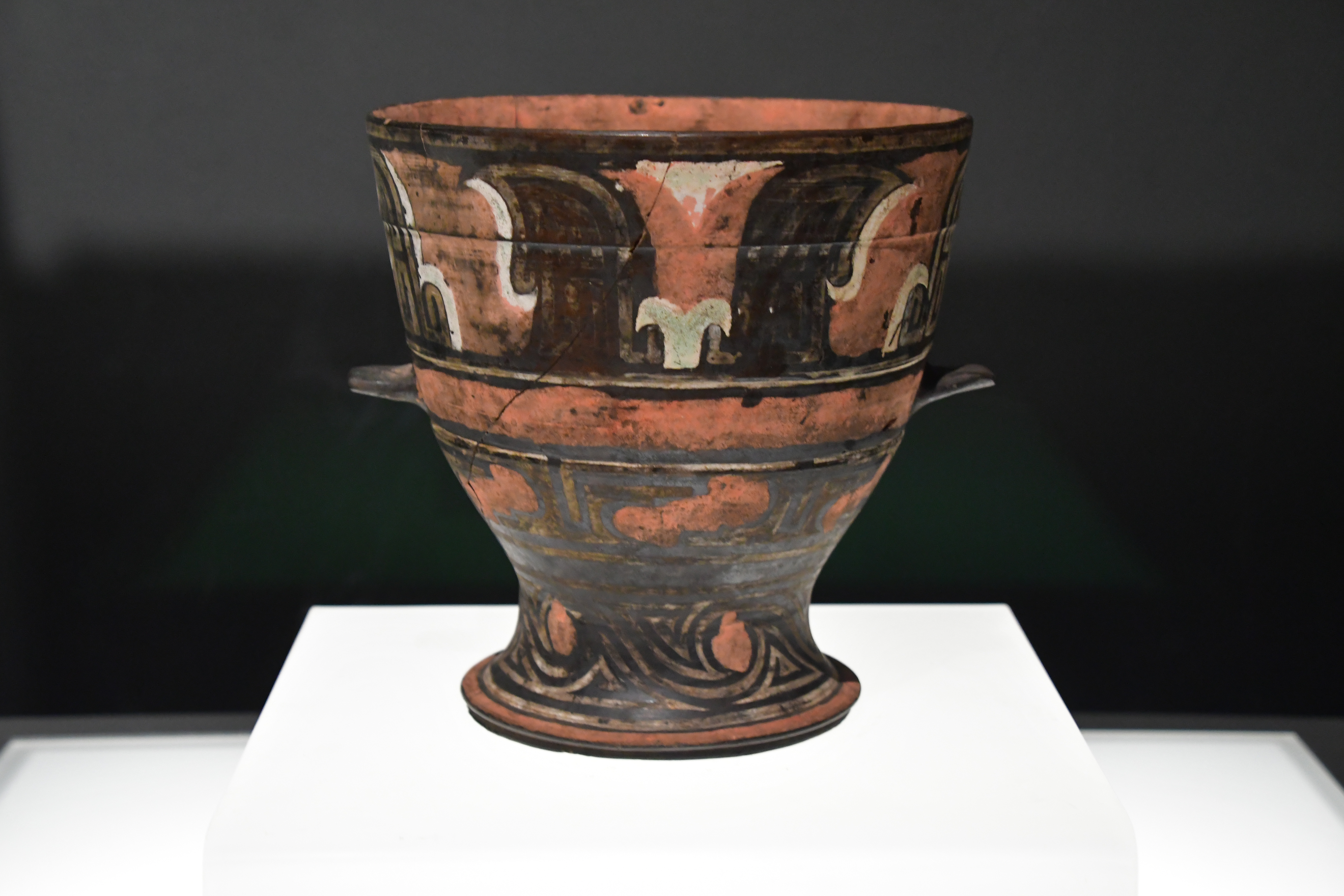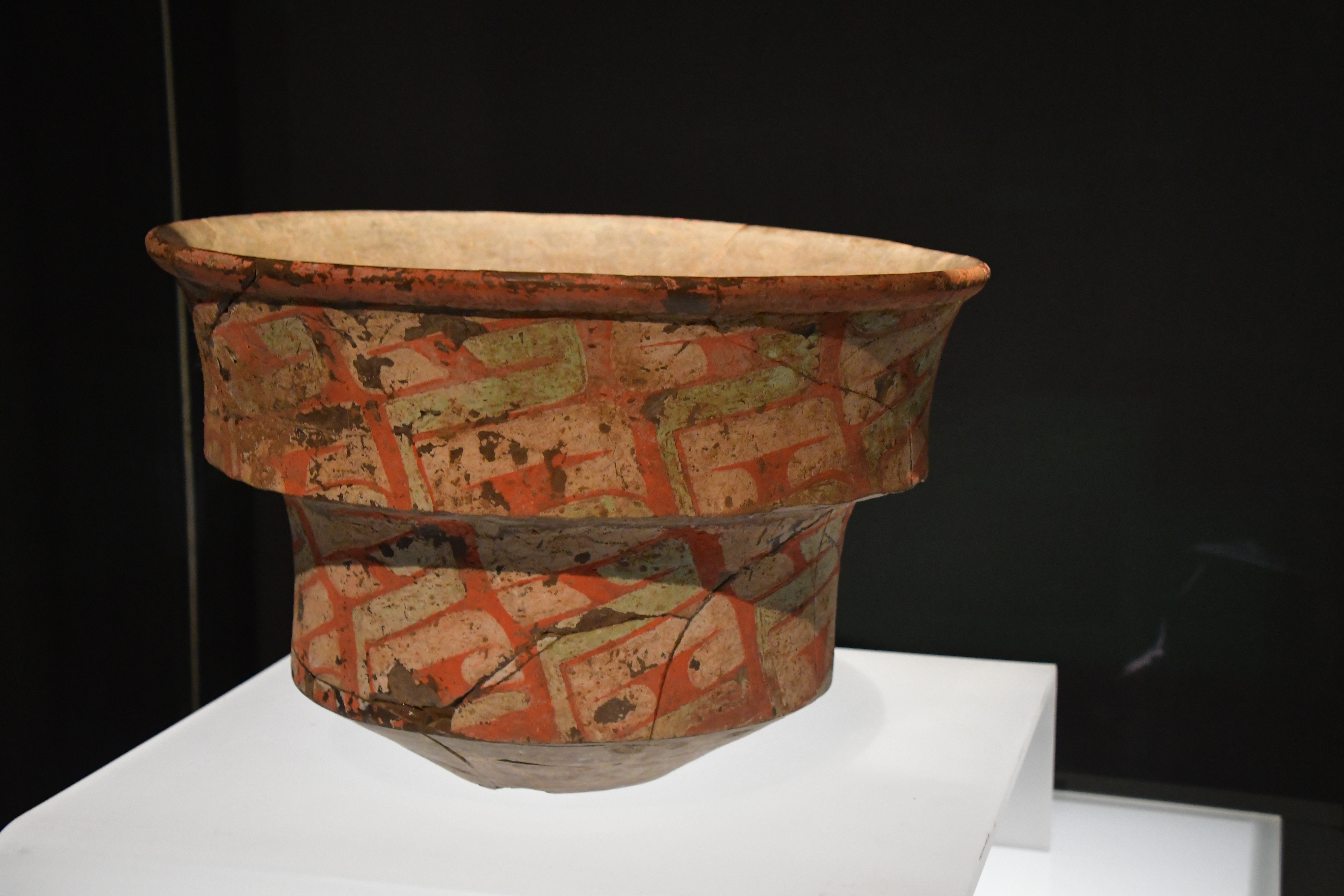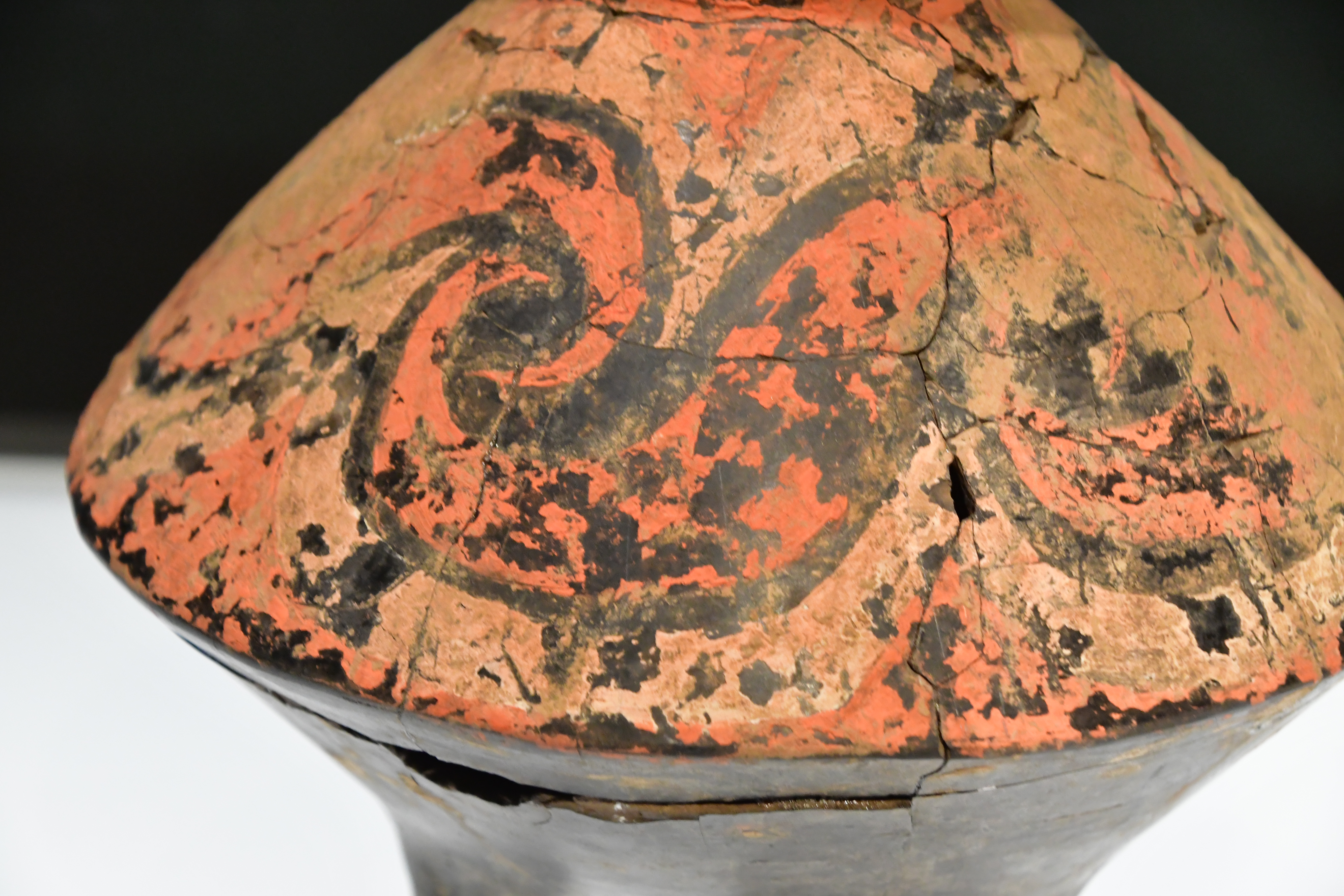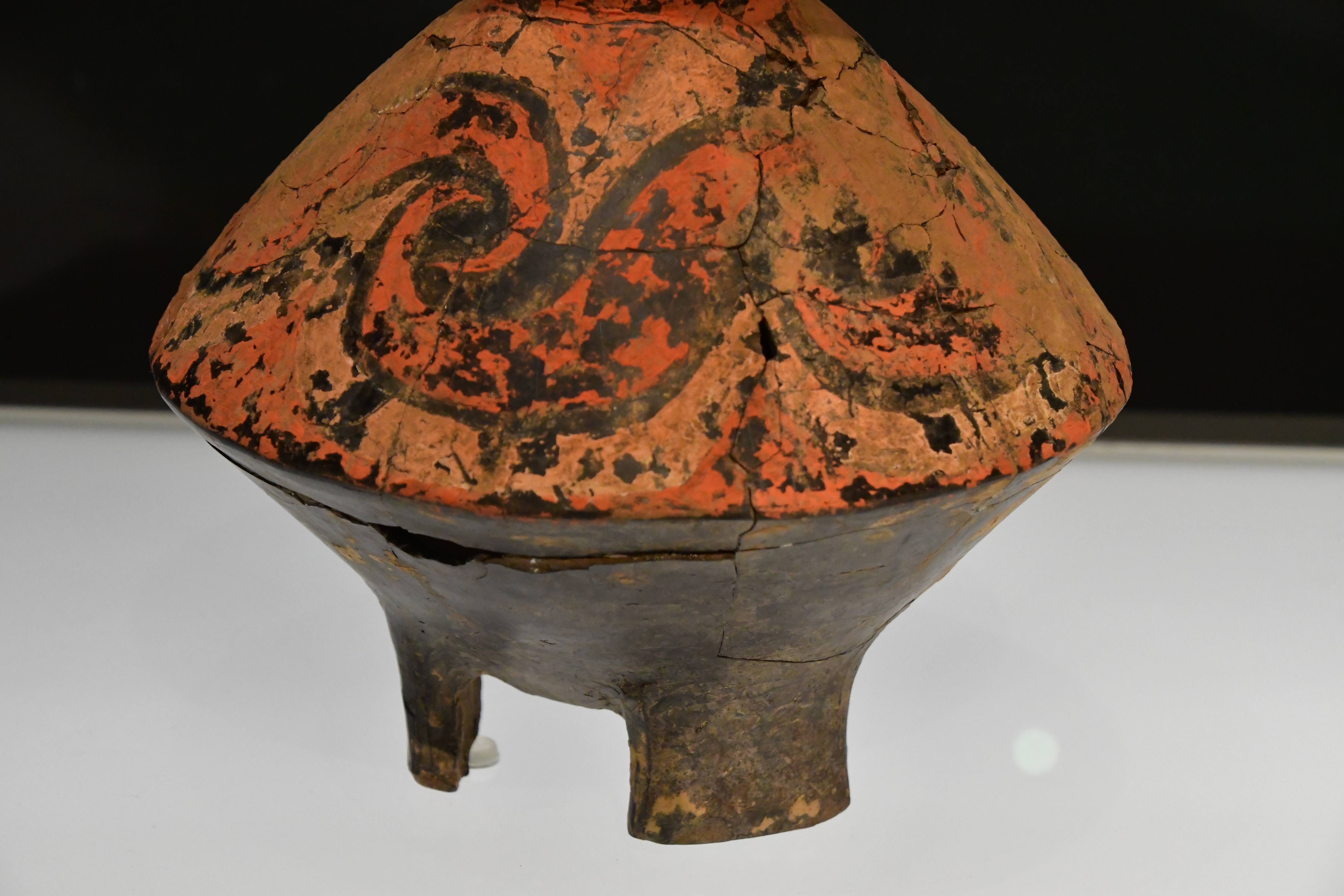 # 알록달록하고 화려한 채색 도자기는 도사유지 예기의 가장 큰 특색이다. 채색도기는 채색화가 소결(燒結)*되지 않아 쉽게 오염되고 손상되기 쉬워 실용기능이 없어 장례 등 예의활동을 위해 특별히 제조되었다. 궤(簋)는 벼, 밤 등 곡류의 음식물을 담는 식기로서 신석기시대 말기에 이미 등급과 신분, 제사 등 예의적 함의를 표시하였다.