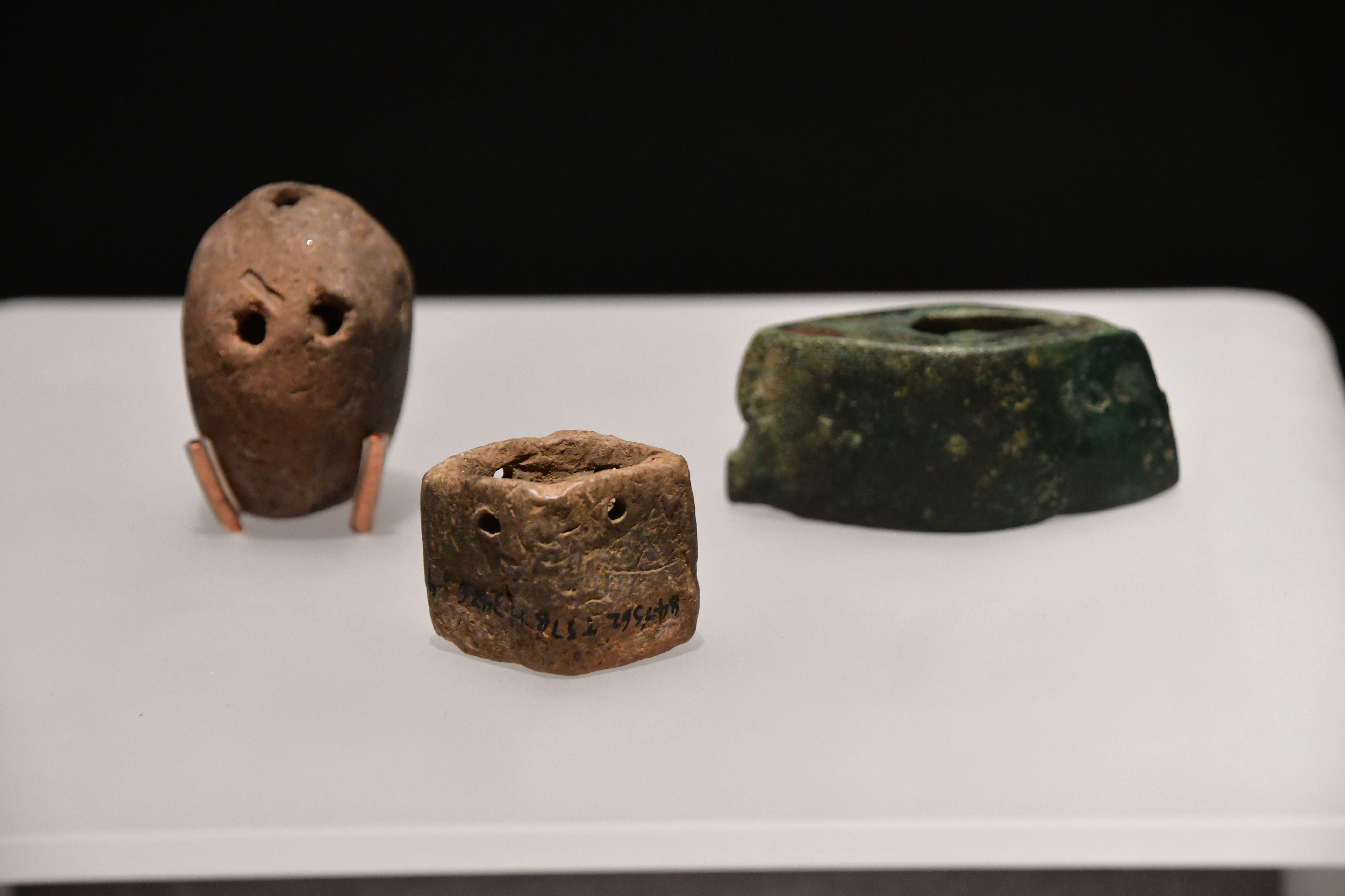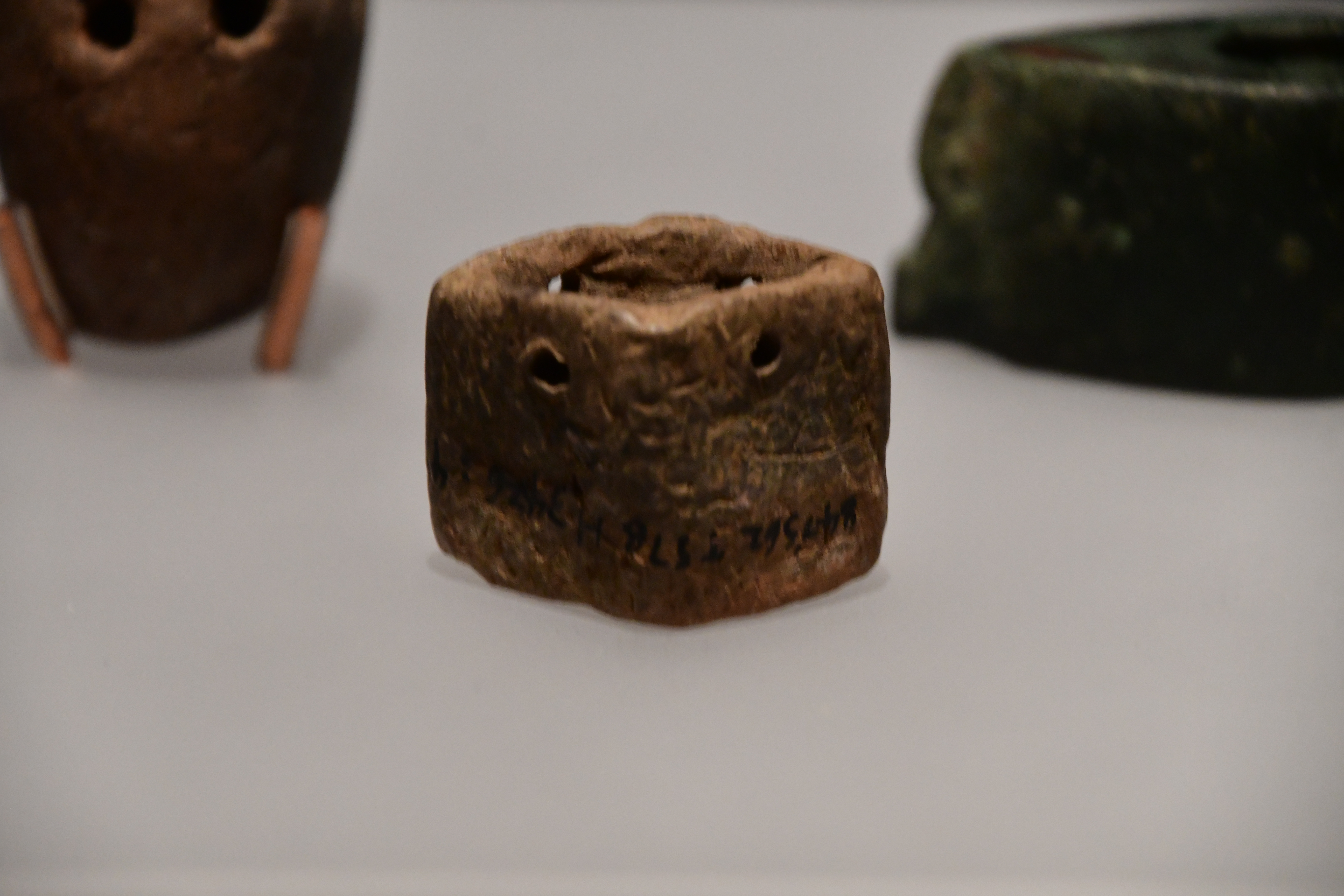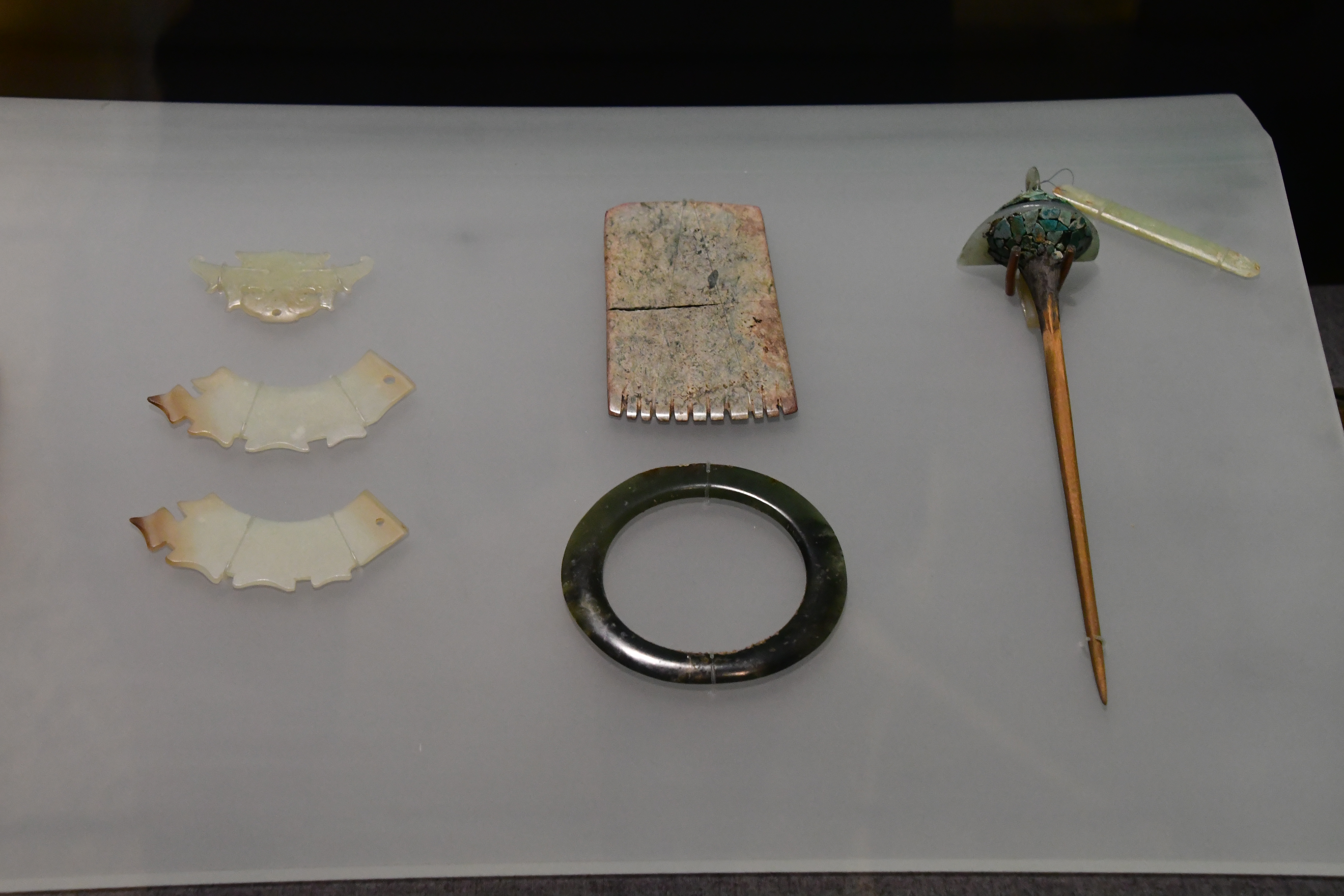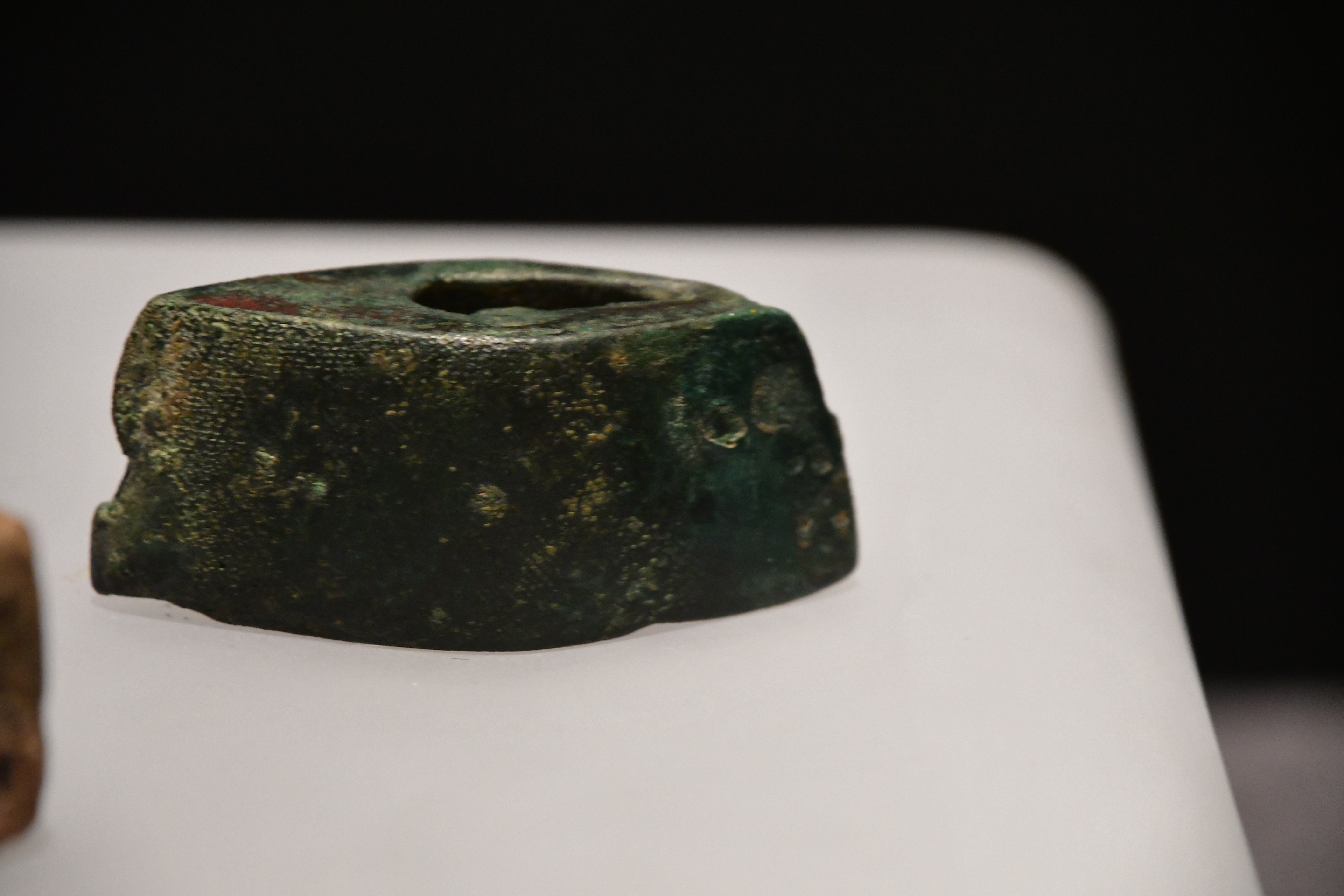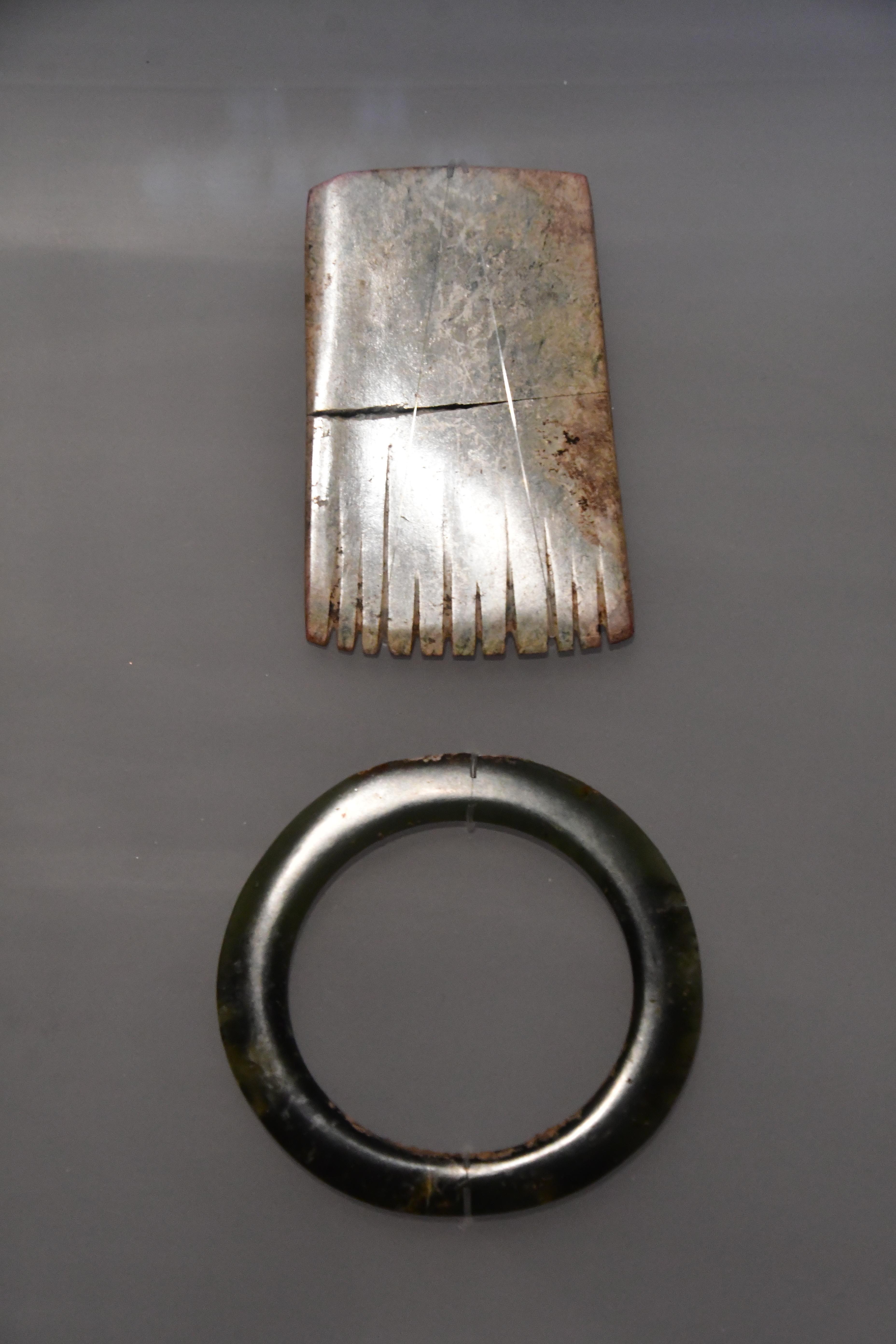 도사문화말기 묘장품에서 출토되었다. 출토 당시 뼈로 만든 시럭 좌측 다리뼈에 있었다.