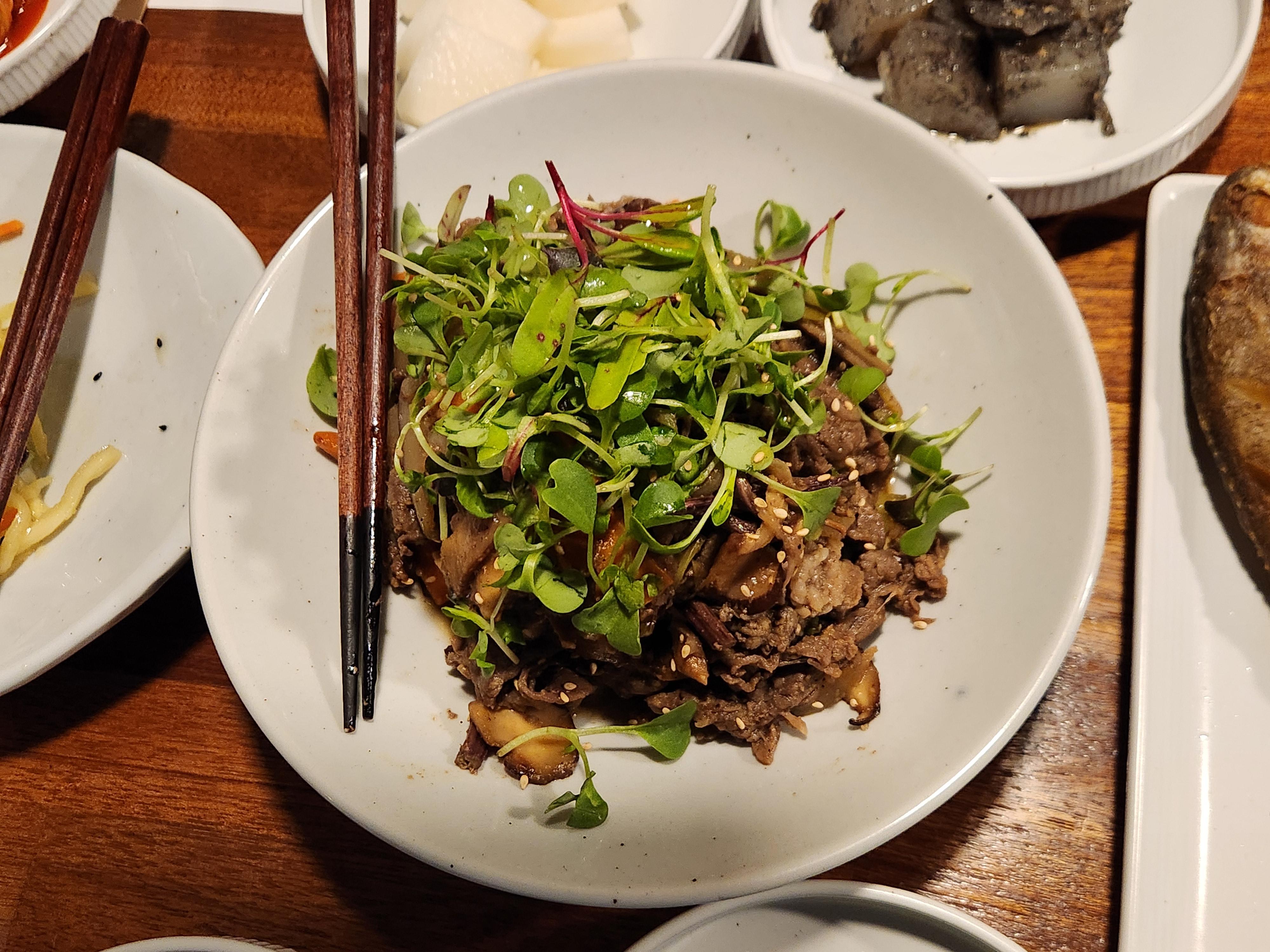 # 열무순으로 모양을 낸 소불고기.