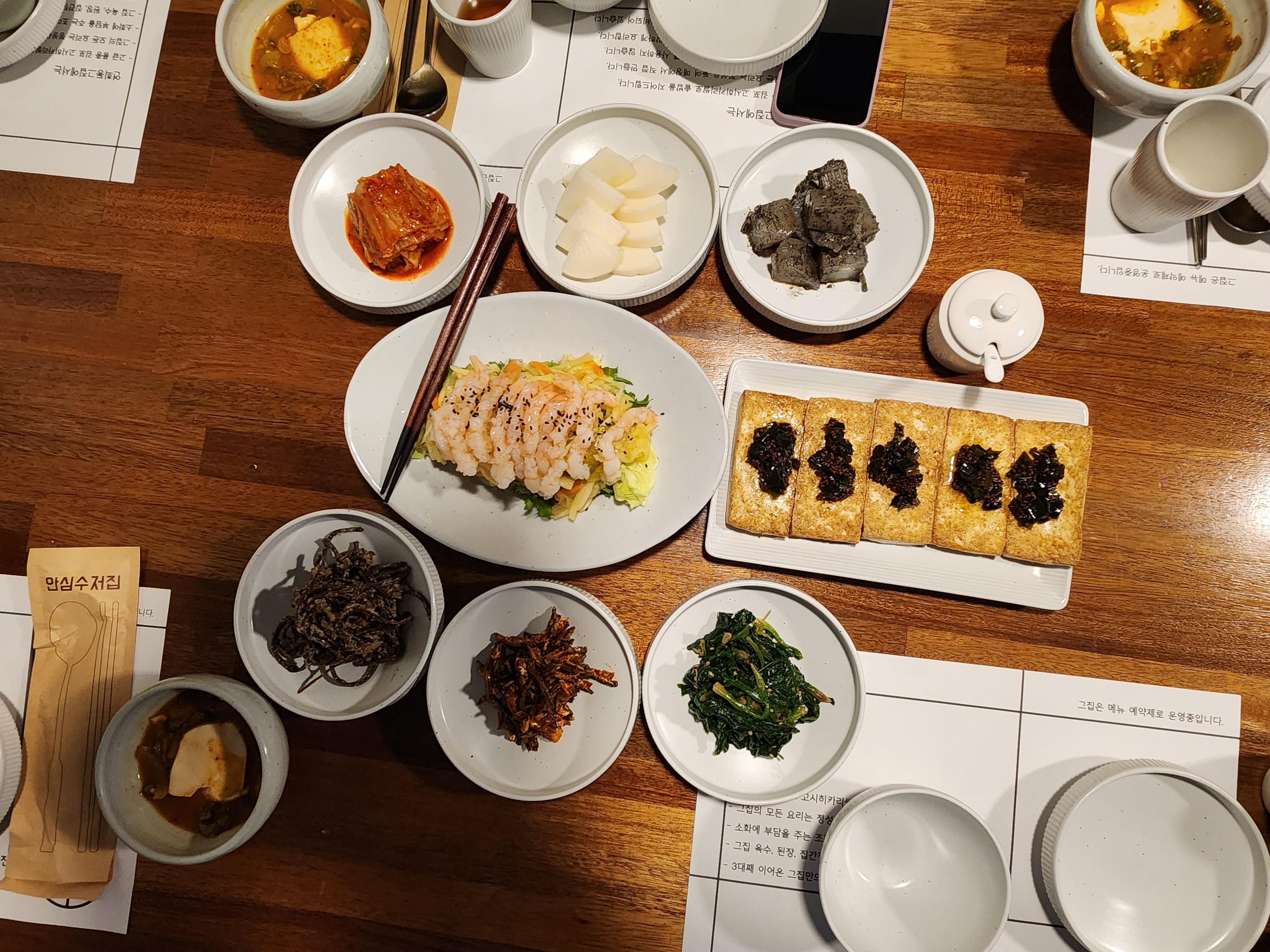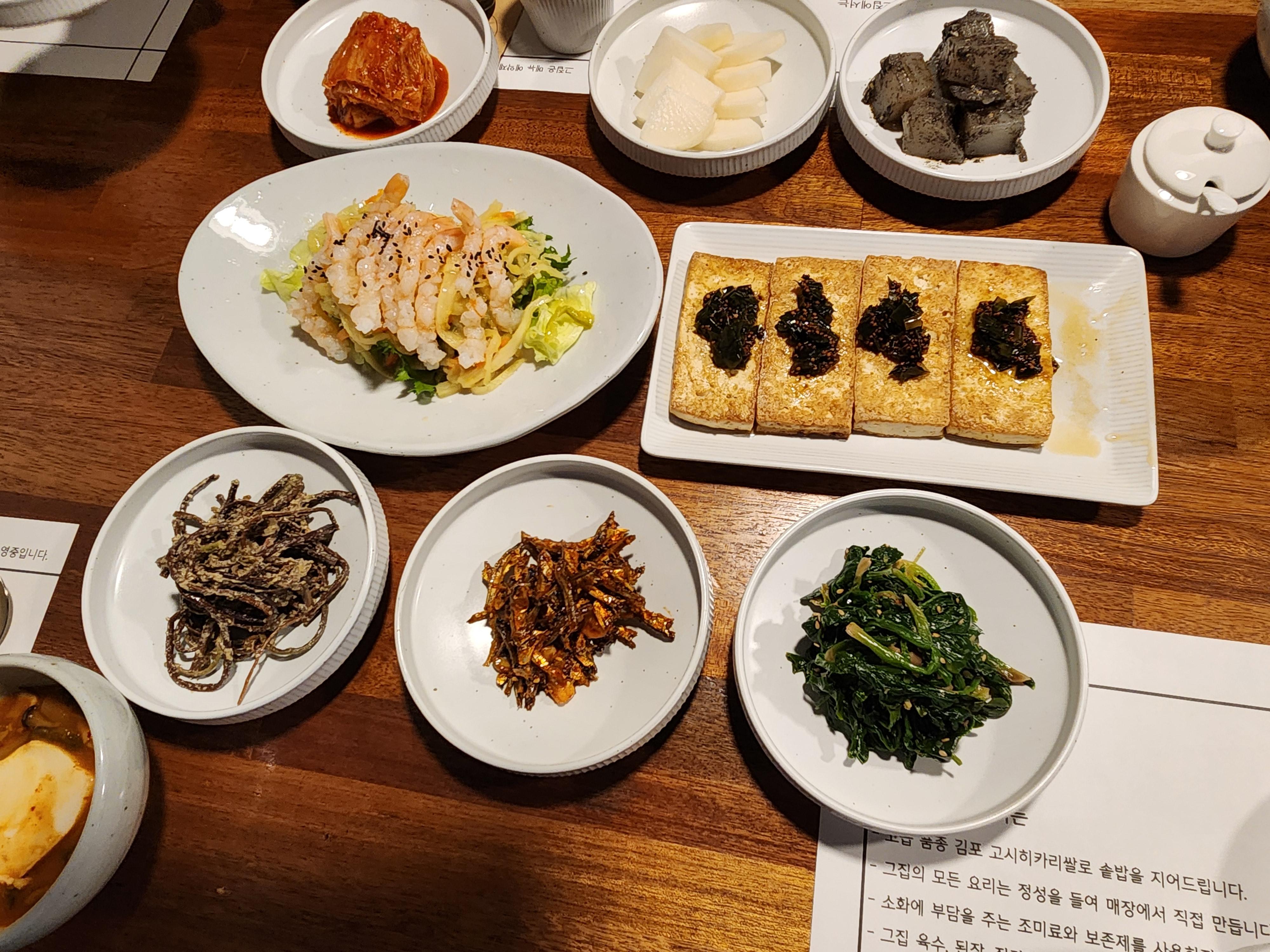 - 메뉴는 코스같고 분위기는 한상차람이다. 사장님이 처음 세팅한 접시들을 위치를 계속 바꾼다.