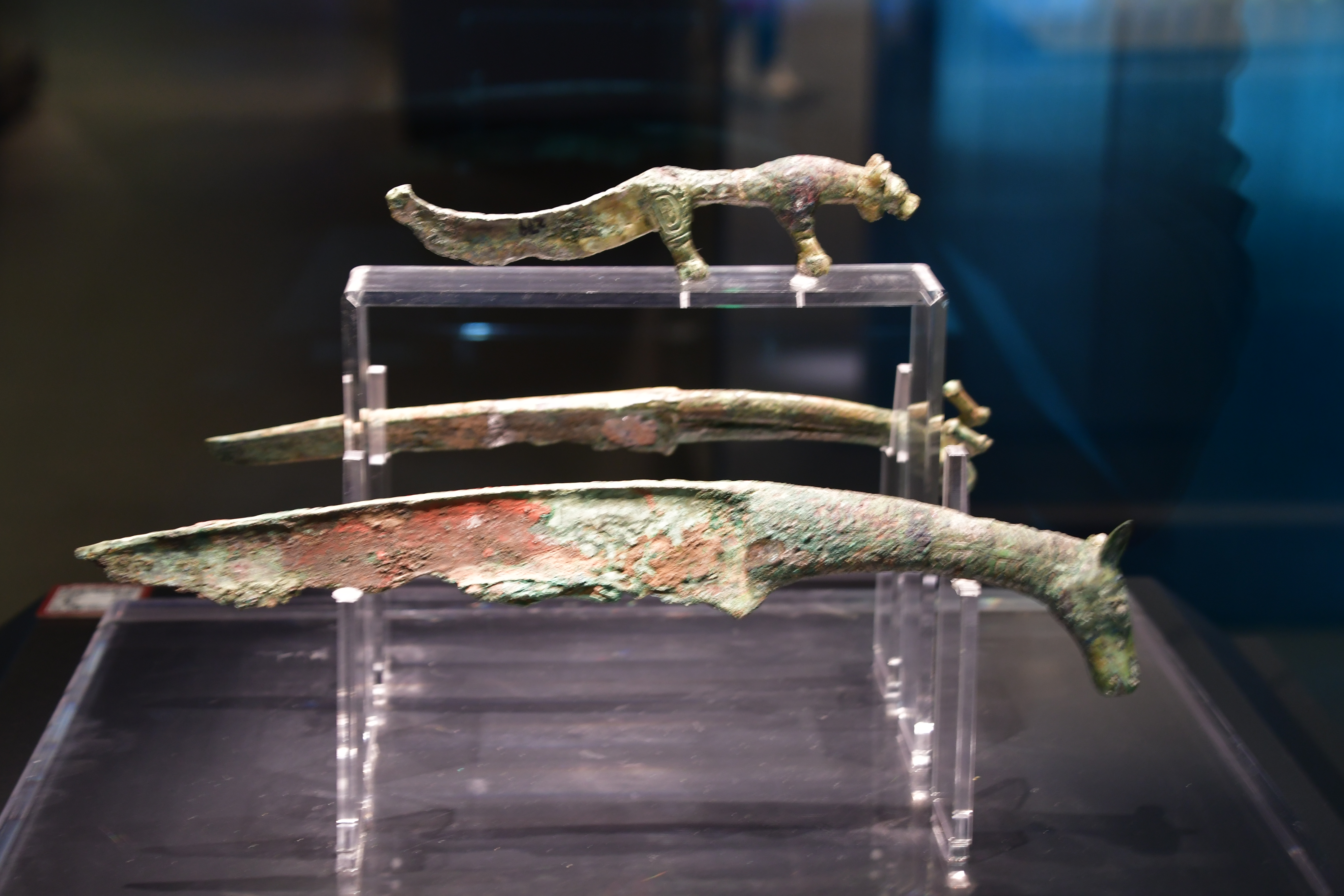 - 복사(卜辞)의 기록에 따르면, 상나라 무정왕(武定王) 시대에 상나라 사람들은 태항산 동서 기슭과 기주[하북성] 북부 산악지대에 거주하는 북방 부족들과 자주 전투를 벌였다고 한다. 이 청동 '짐승머리 칼'은 북방 초원문화의 특징을 분명히 보여준다. 상나라 사람들이 북방 부족과의 전쟁에서 얻은 전리품일 수도 있고, 은허(殷墟) 지역에 북방 외래 문화가 유입된 후 현지에서 제작되었을 가능성도 있다.