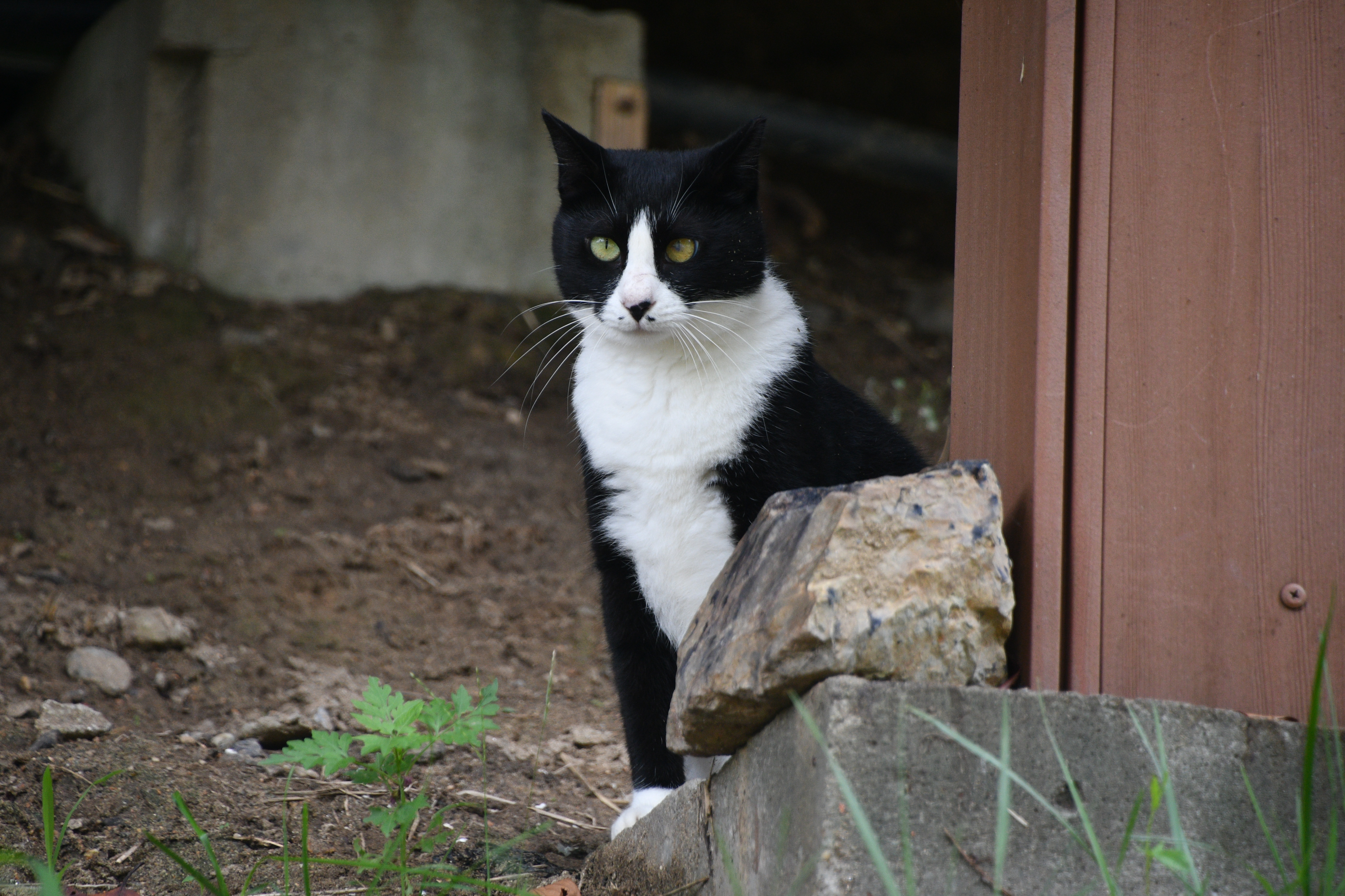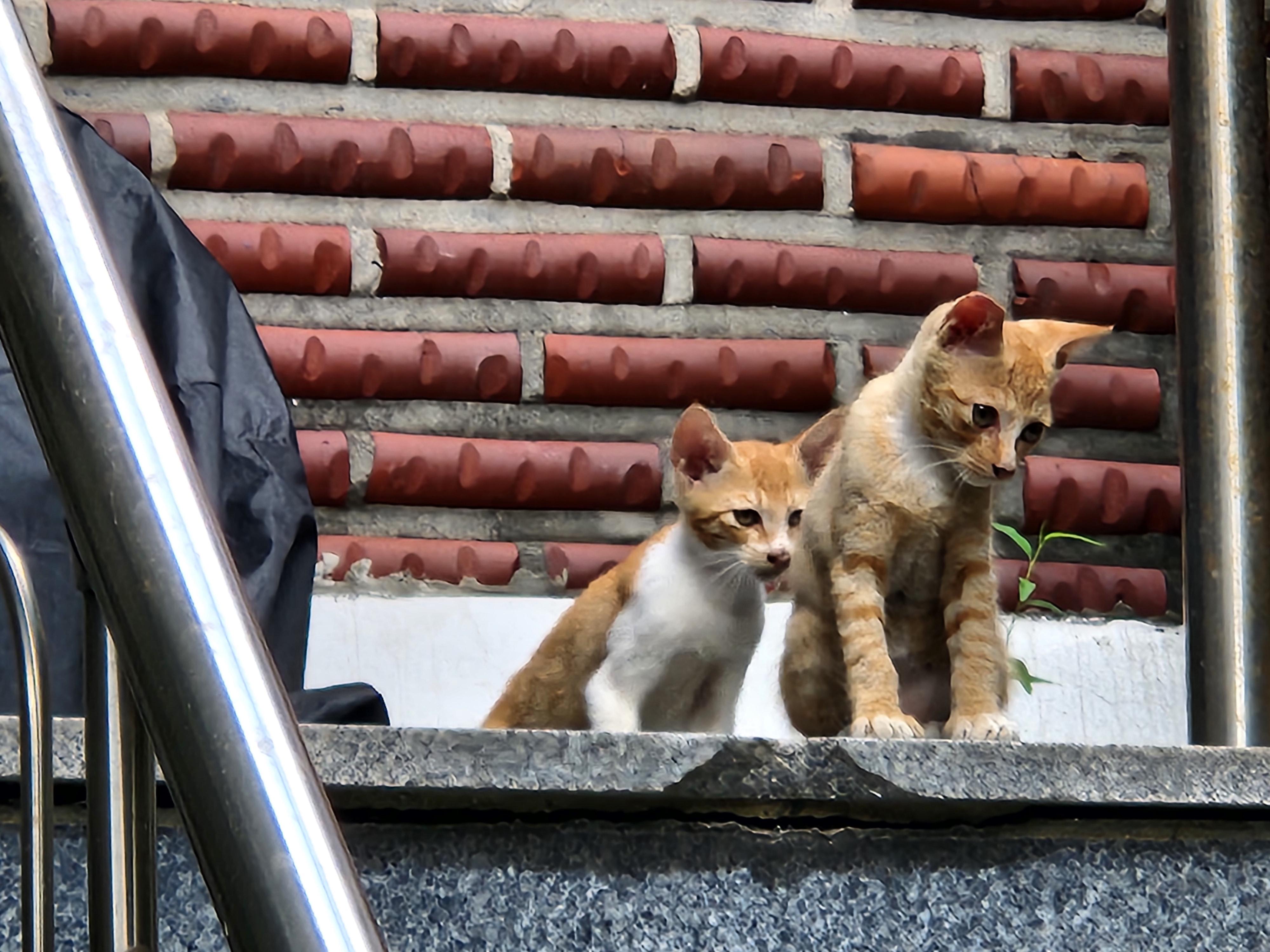 - 사람을 보자 새끼 고양이가 계단 뒤로 내려가자 어미가 쫒아가고 한마리씩 내려간다. 모두 마리...