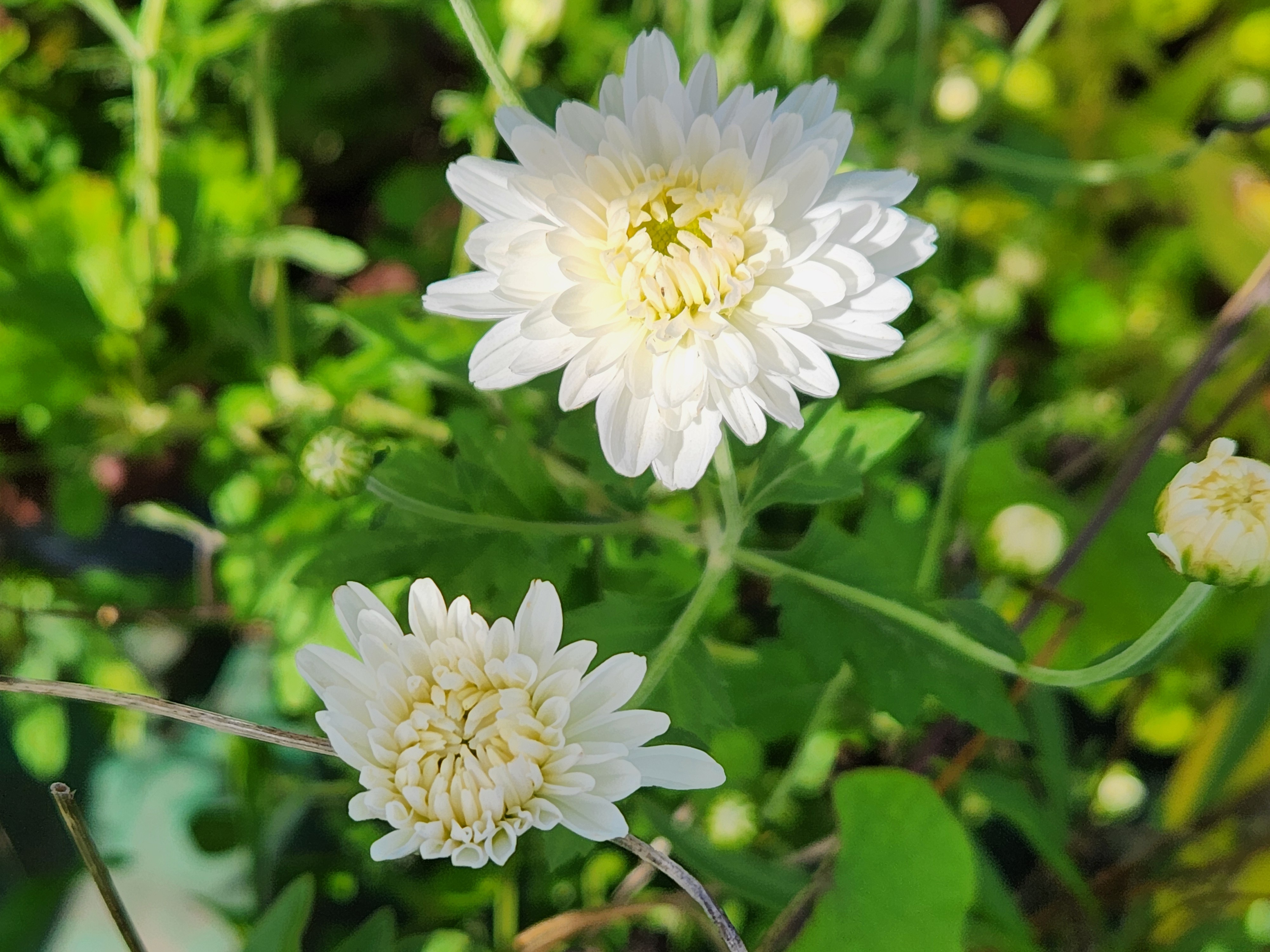 - 참나리가 대가지 사라지고 허전했던 화분에 하얗고 귀여운 국화가 피고 있다.