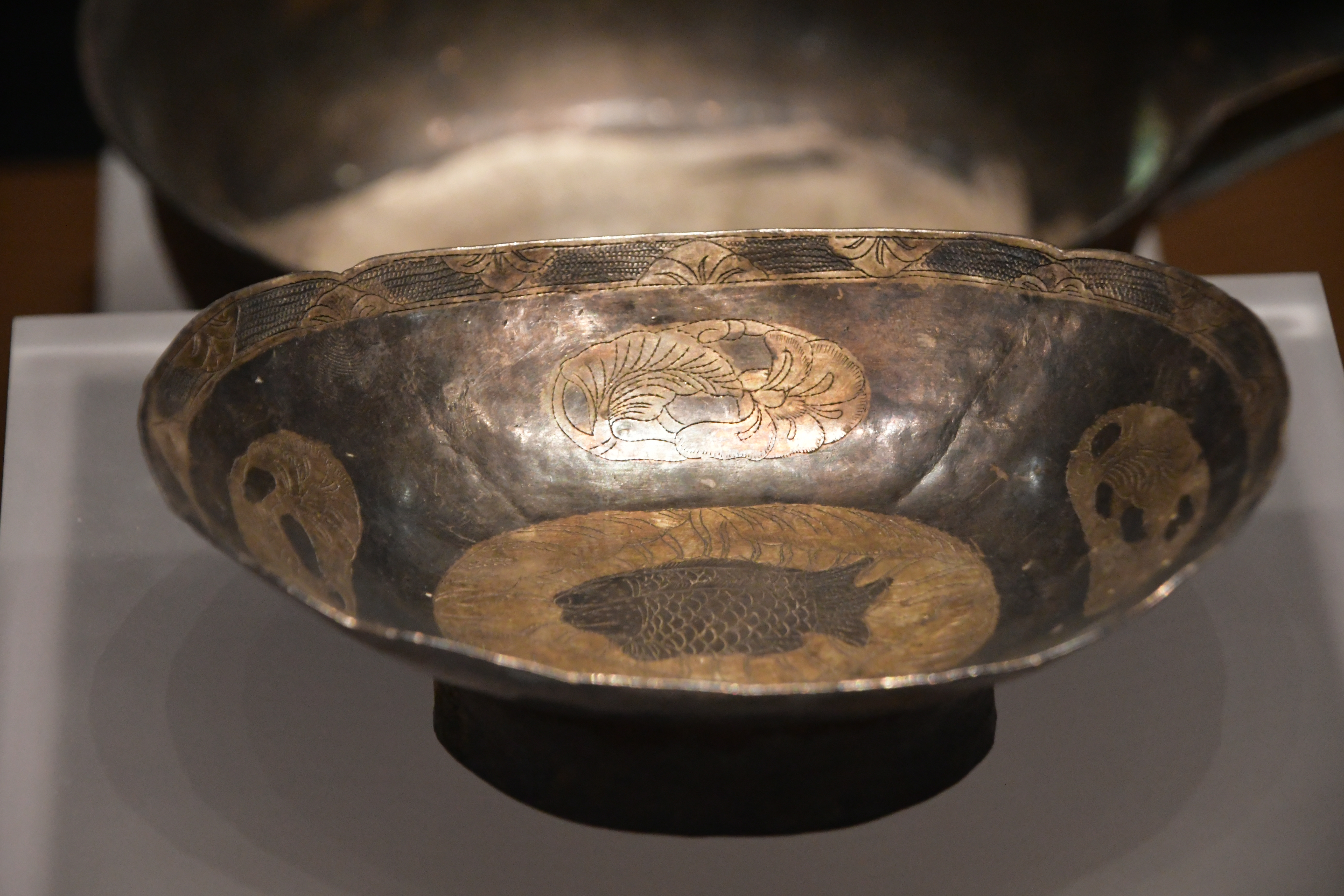 ◆ 04. 유금홍안절지화문은치(鎏金鴻雁折枝花紋銀匜)