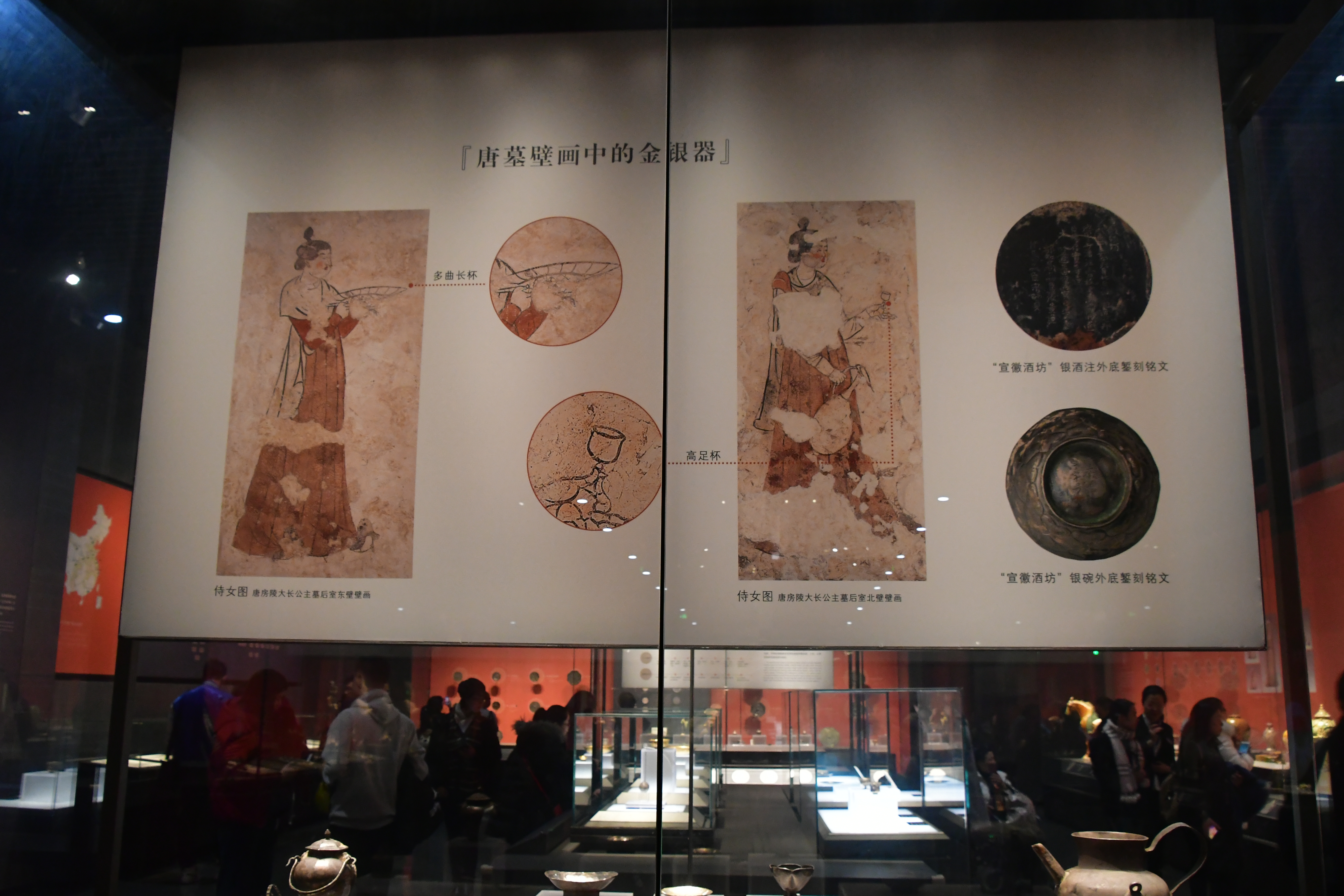 "선휘(宣徽)"는 당대의 선휘원(宣徽院)을 가리키는 말로, 환관들이 관리하고 교외에서 제사, 연회, 식량 조달을 담당했다. "현회주방(宣徽酒坊)"이라는 명문이 새겨진 그릇은 선휘원이나 황실 연회에 사용되었을 가능성이 높다. 바깥쪽 바닥에 새겨진 " 우자호(宇字号)"와 " 지자호(地字号)"는 은제 그릇과 은제 술병의 세트 기물의 번호를 나타낸다.