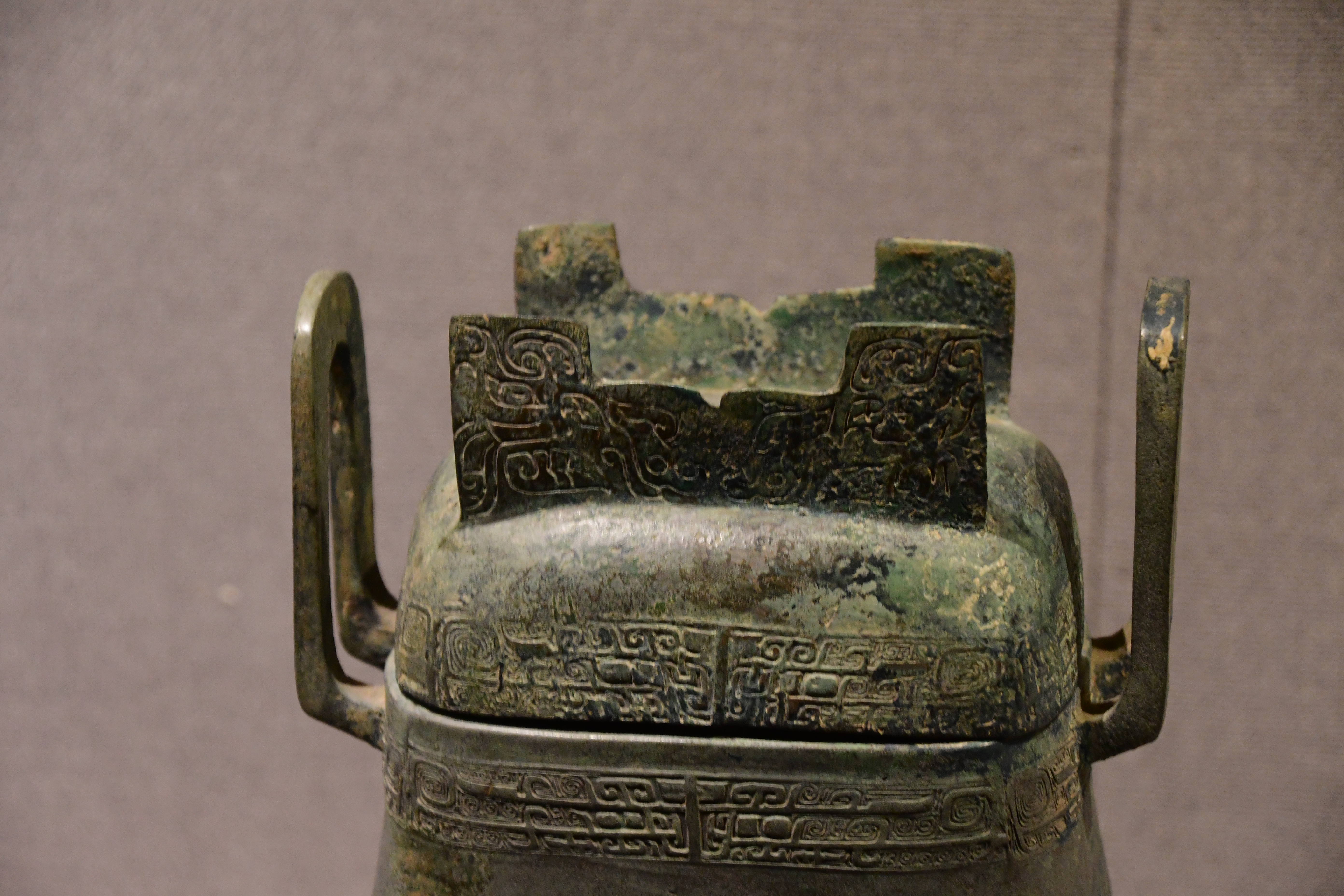 ◆ 대개부이타방정(帶蓋附耳楕方鼎)_띠 문양이 새겨진 뚜껑에 귀가 달린 타원형방정.