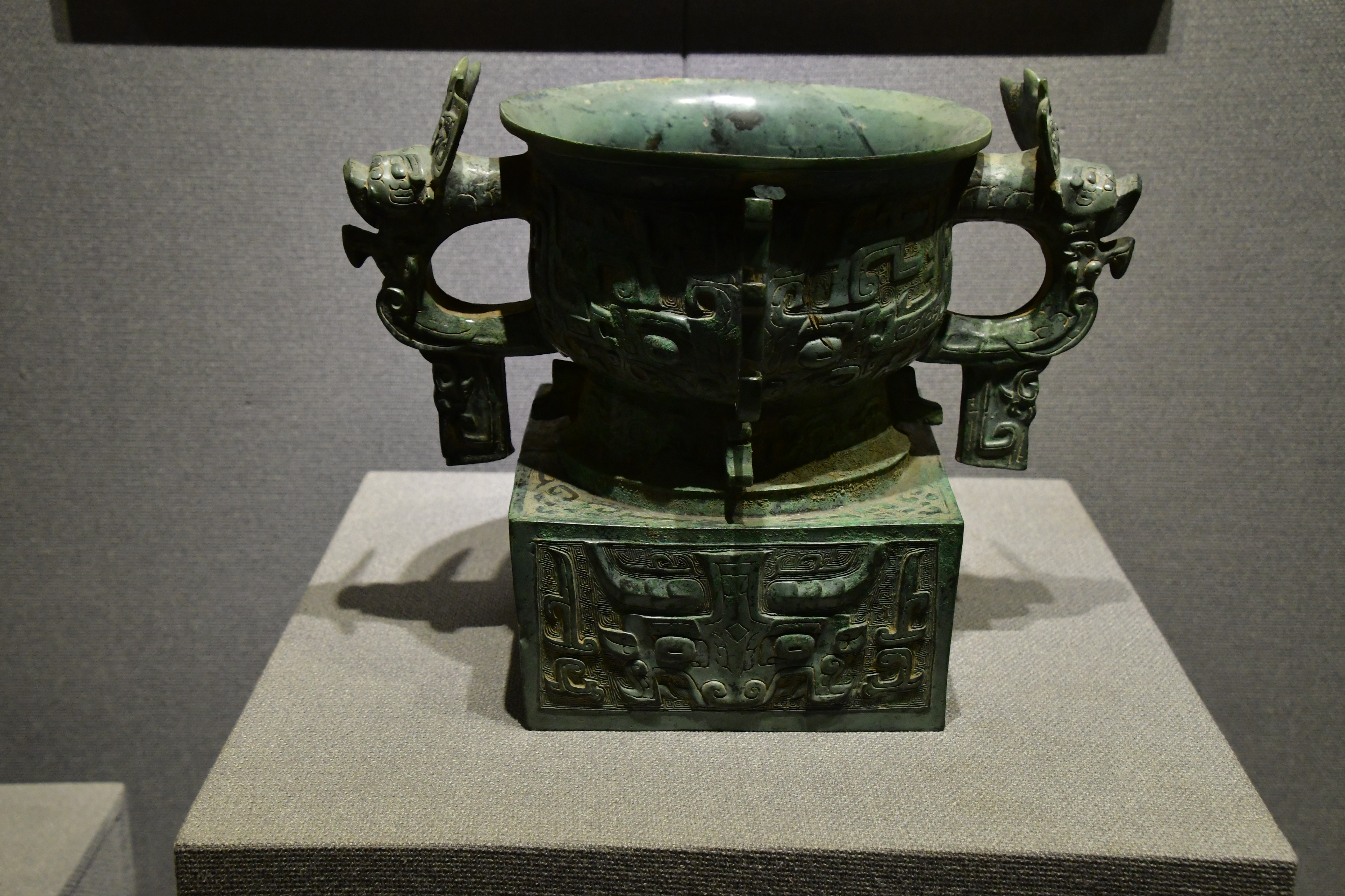 ◆ 수면문쌍방좌궤(獸面紋雙耳方座簋)_짐승 얼굴 문양이 새겨지고 쌍이가 있는 네모받침이 있는 궤.