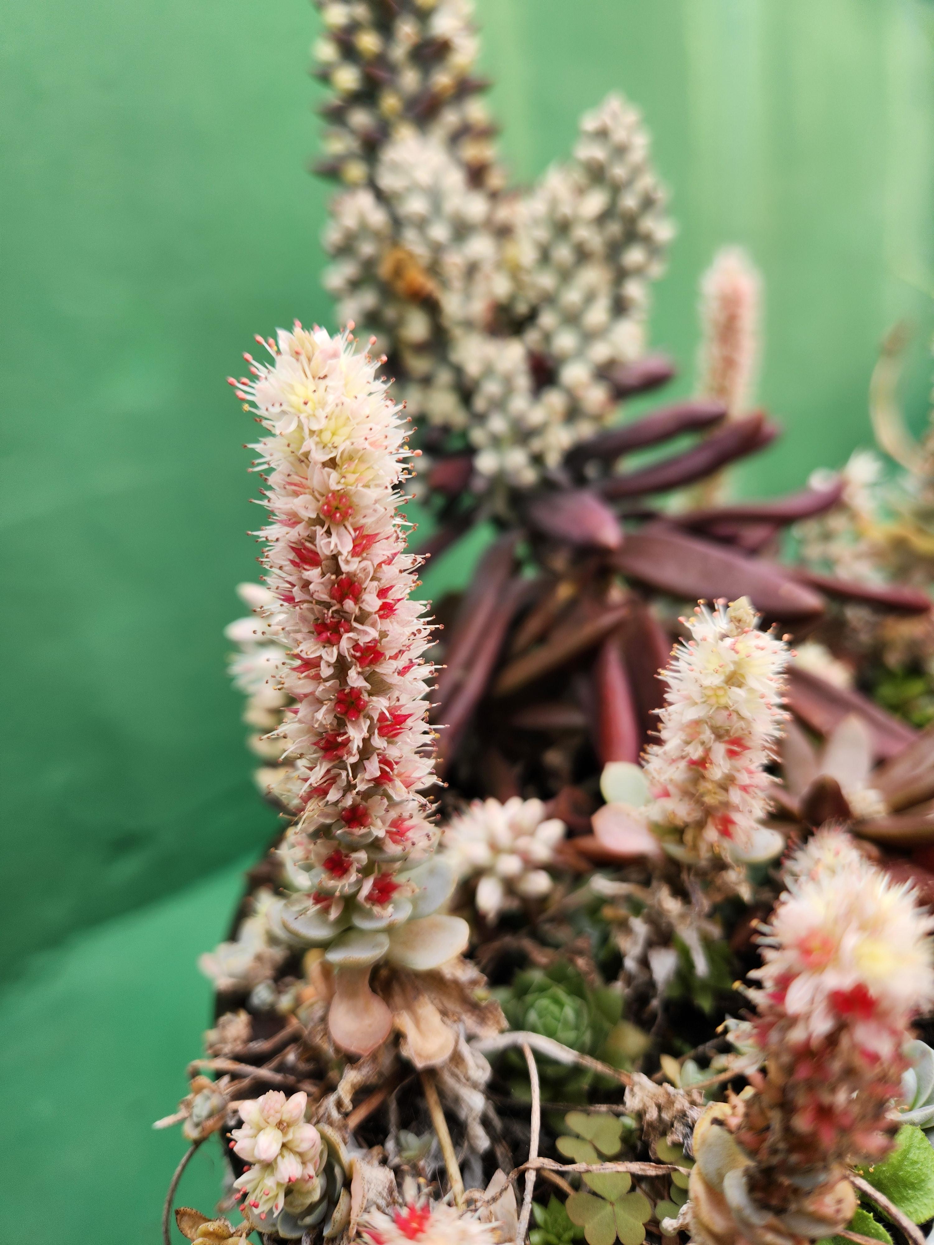 - 키 작은 와송은 꽃이 노란색에서 붉은색으로 변하고 있다.