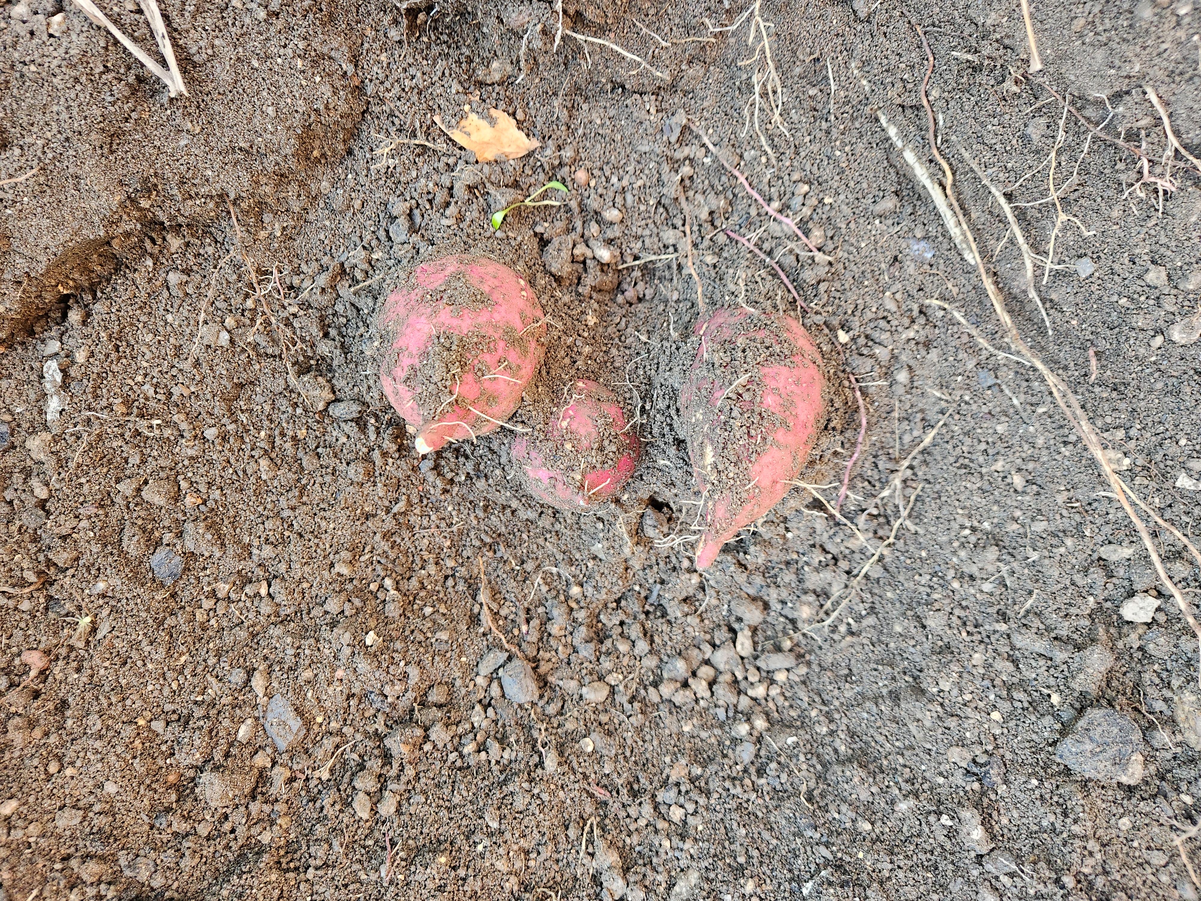 ◆ 봄에 산 밑 빌라 화단에 버려진 고구마를 4명이 나누어 각자 밭에 심었다. 혹시 꽃이 필까해서 심었다. 꽃은 안 피고, 작은 고구마가 몇 개 달린 듯하다. 영하로 떨어지기 전까지 기다렸다 캘 계획이다. 과연 몇 개나 있을 지 궁금하다.