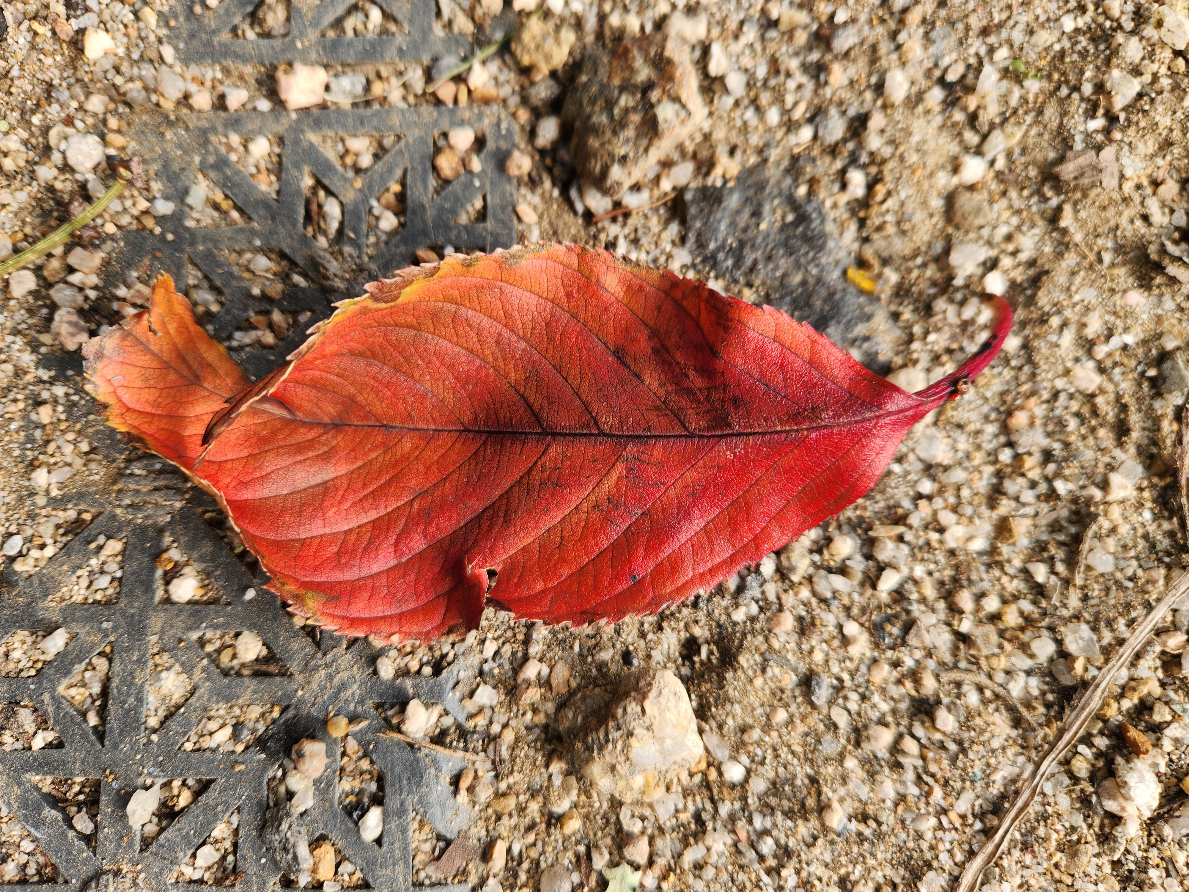 - 이 낙엽을 찍고 있는데 등에 무언가 떨어지는 것이 느껴졌다. 깜짝 놀라 등을 흔드니 바알간 낙엽이었다. 털에도 무게가 있다더니, 진짜 아팠다.? 말년 병장은 떨어지는 낙엽도 조심하라는 말이 생각났다.