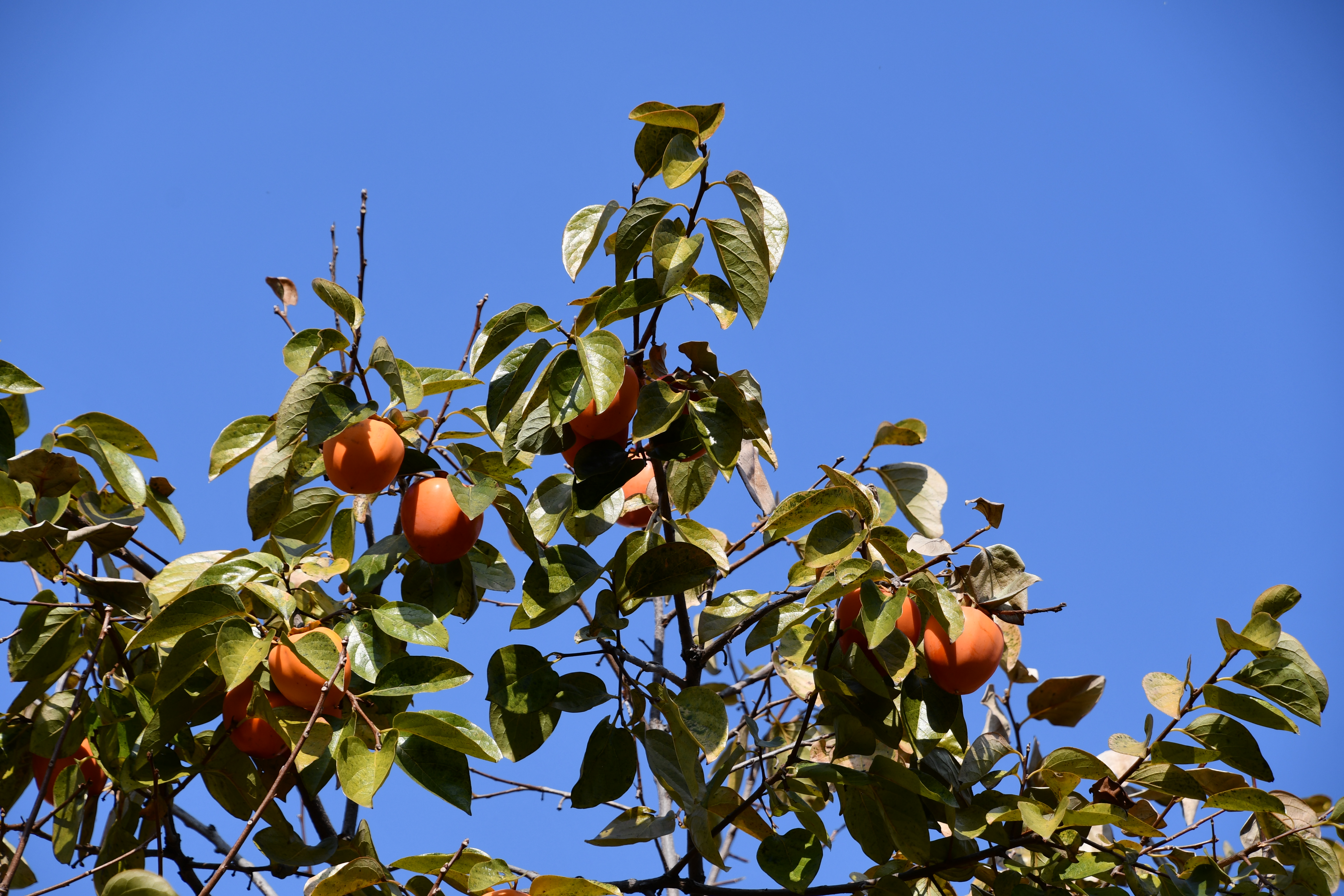 - 나무에는 익어서 떨어진 꼭지만 남아있고, 듬성듬성 아직 덜 익은 감이 끝까지 가지를 붙들고 매달려 있다.
