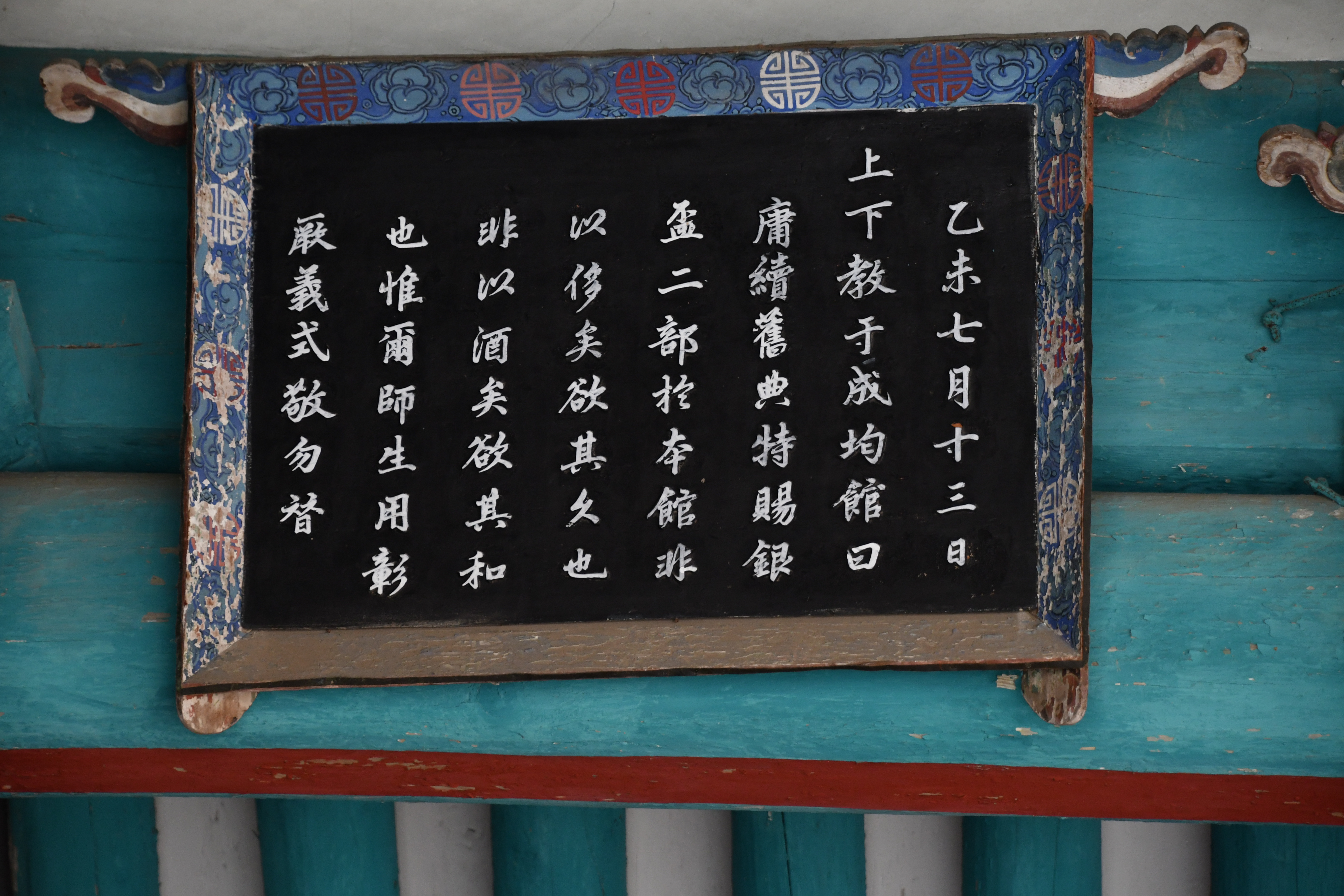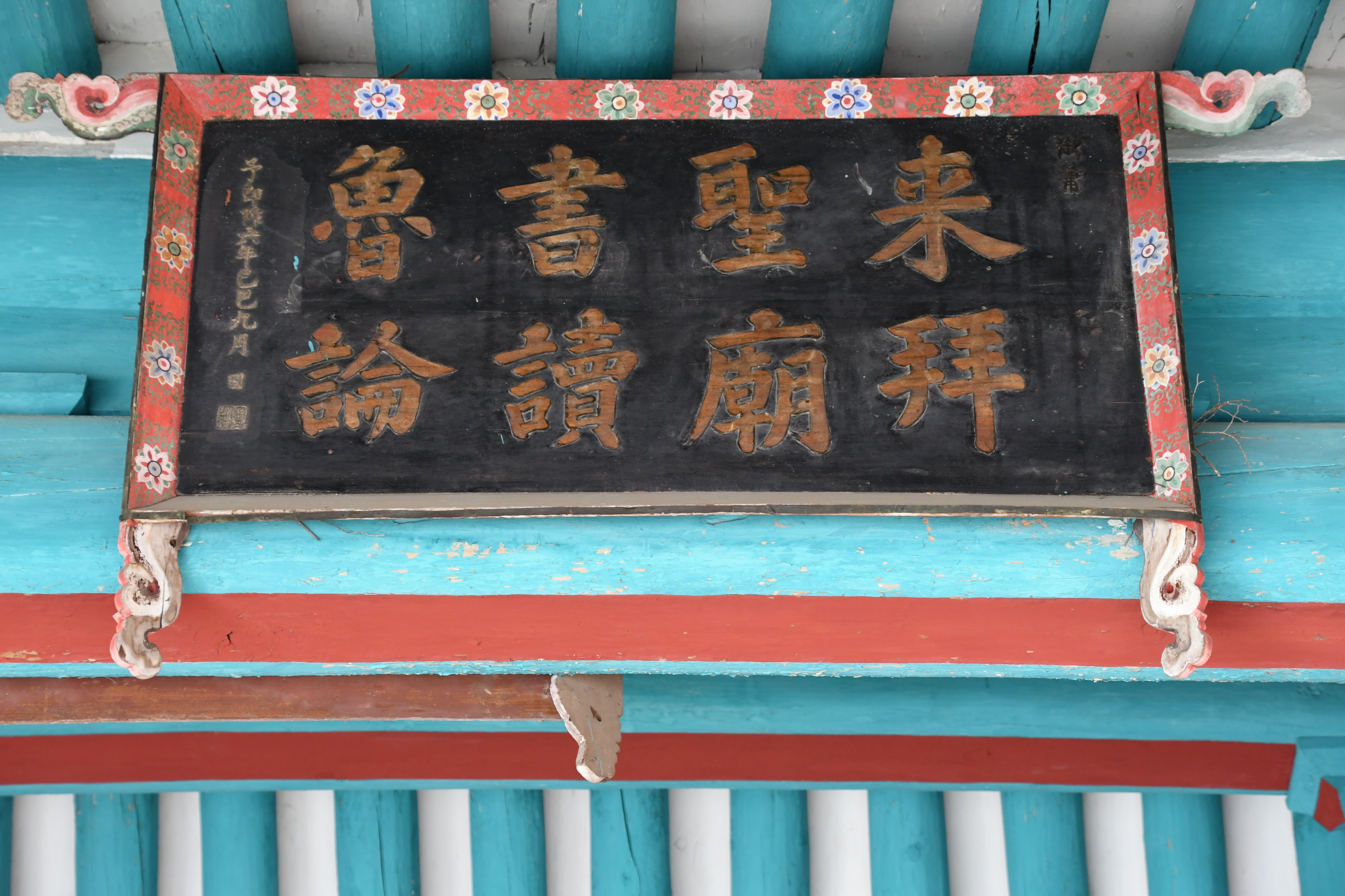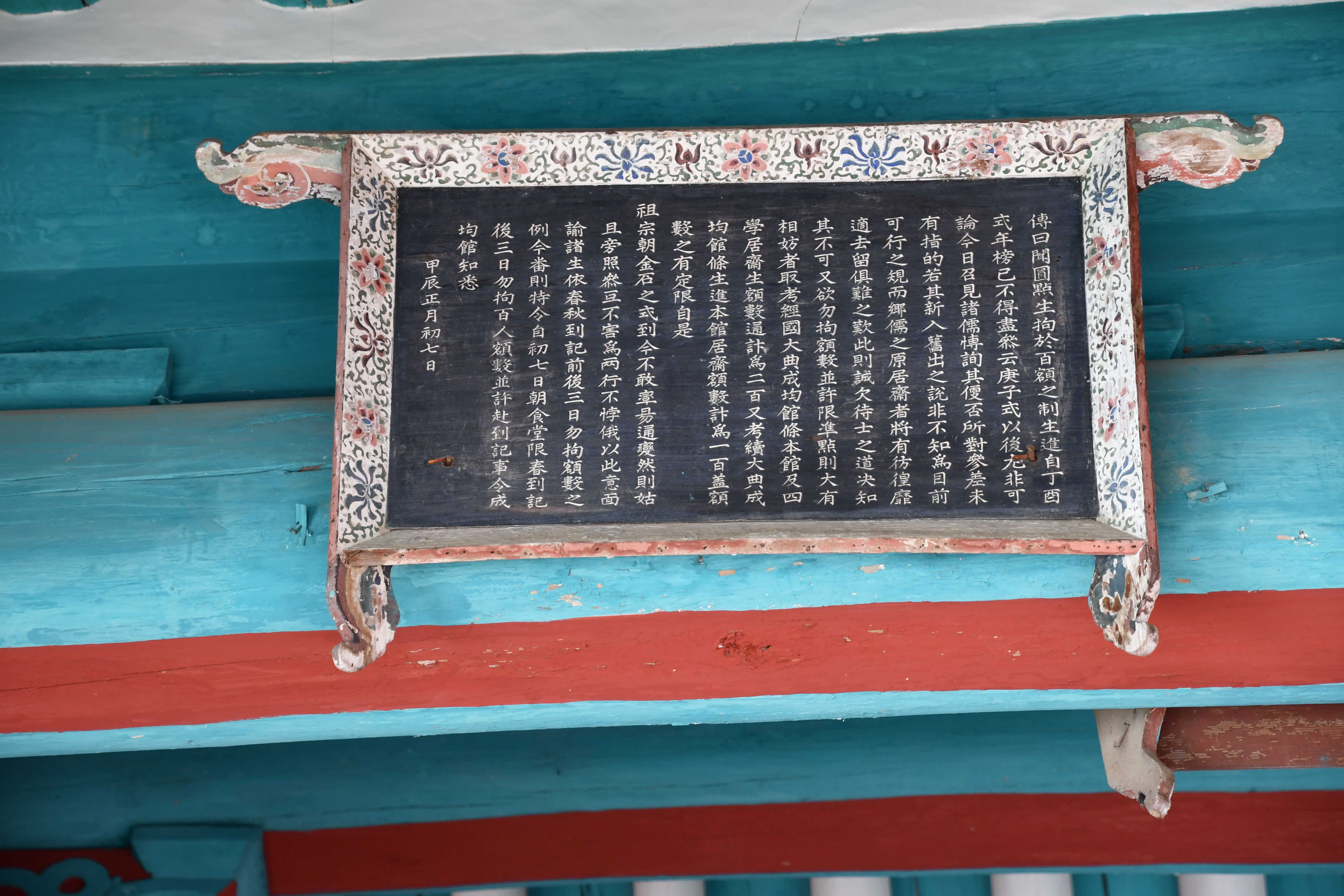 # 명륜당 현판에 신안주희서(新安朱熹書)라고 쓰여 있다.
